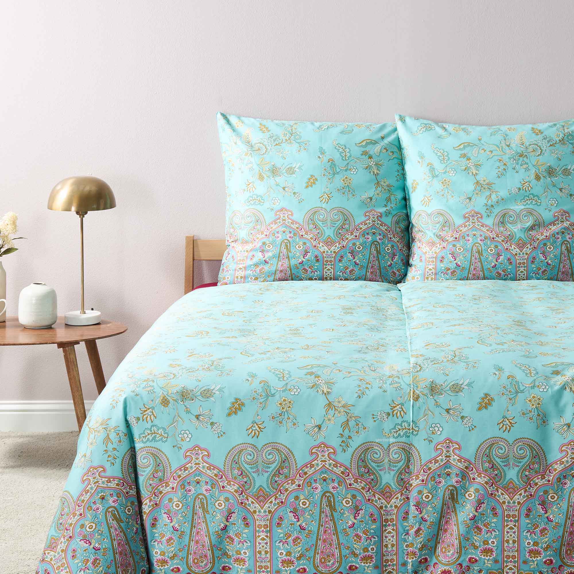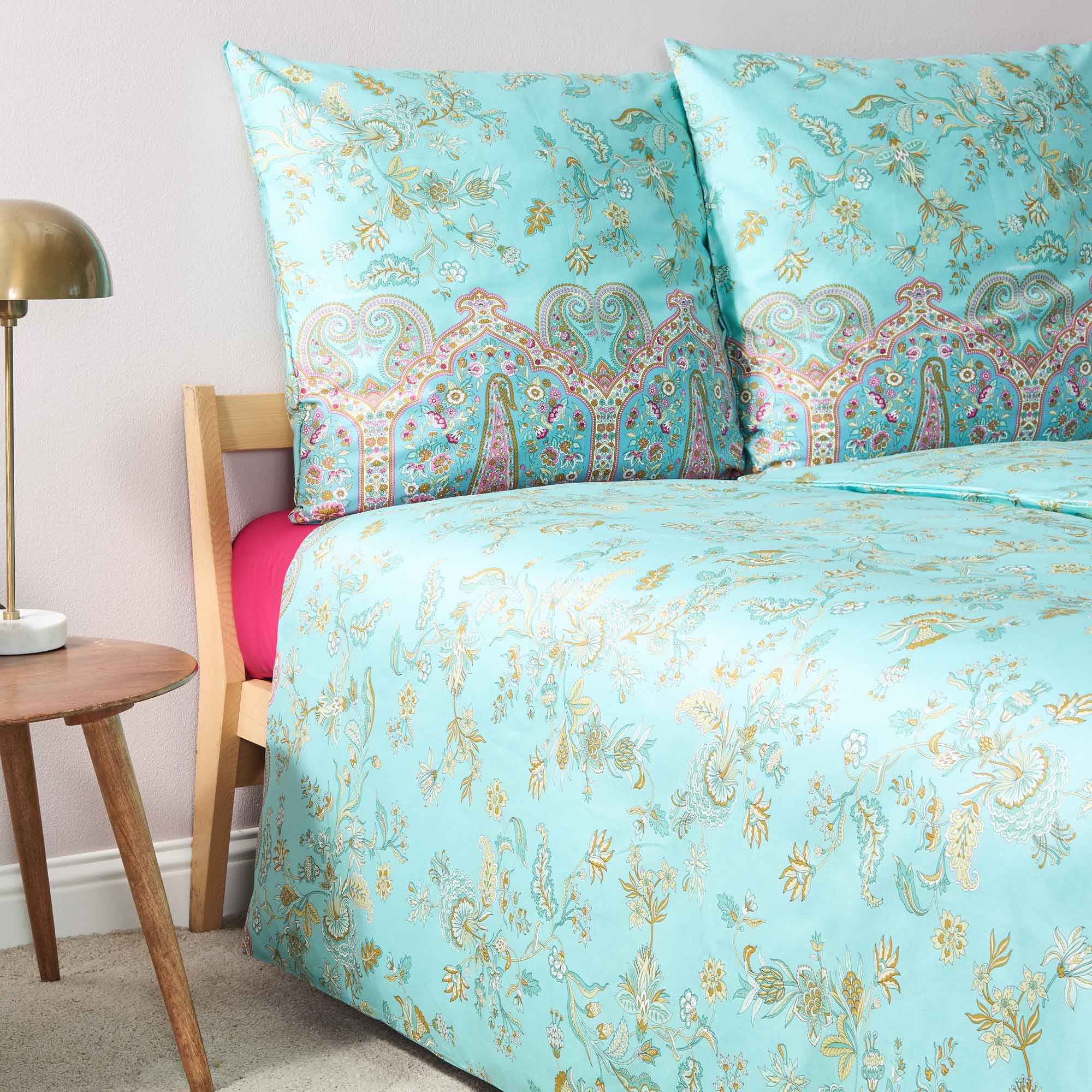Tauchen Sie ein in die beruhigende Farbwelt der Bassetti Bettwäsche Indian Roses T1, die mit ihren pastelligen Jade-Tönen eine Atmosphäre der Entspannung und Leichtigkeit schafft. Inspiriert von der natürlichen Schönheit Apuliens, erinnert das zarte Farbspiel an die frische Meeresbrise und das sanfte Licht, das durch Olivenhaine und auf mediterrane Steinfassaden fällt.