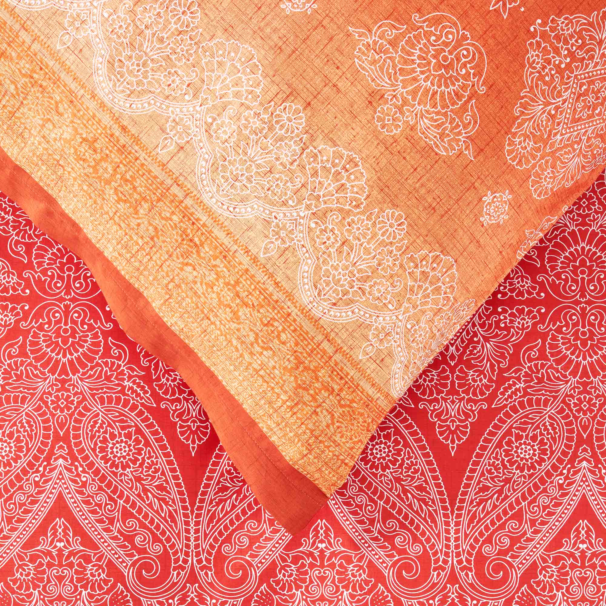 Die lebendige Farbpalette aus Korallenrot, kombiniert mit warmen Orangetönen, verleiht Ihrem Raum eine fröhliche Note und sorgt für ein Gefühl von Wärme und Gemütlichkeit. Hergestellt aus hochwertigen Materialien bietet diese Bettwäsche Kerala O1 nicht nur einen stilvollen Look, sondern auch höchsten Schlafkomfort. Gönnen Sie sich das luxuriöse Gefühl dieser einzigartigen Bassetti Bettwäsche Kerala O1und verwandeln Sie Ihr Schlafzimmer in eine Oase der Entspannung und Schönheit. Ideal für alle, die Wert auf Design und Qualität legen!