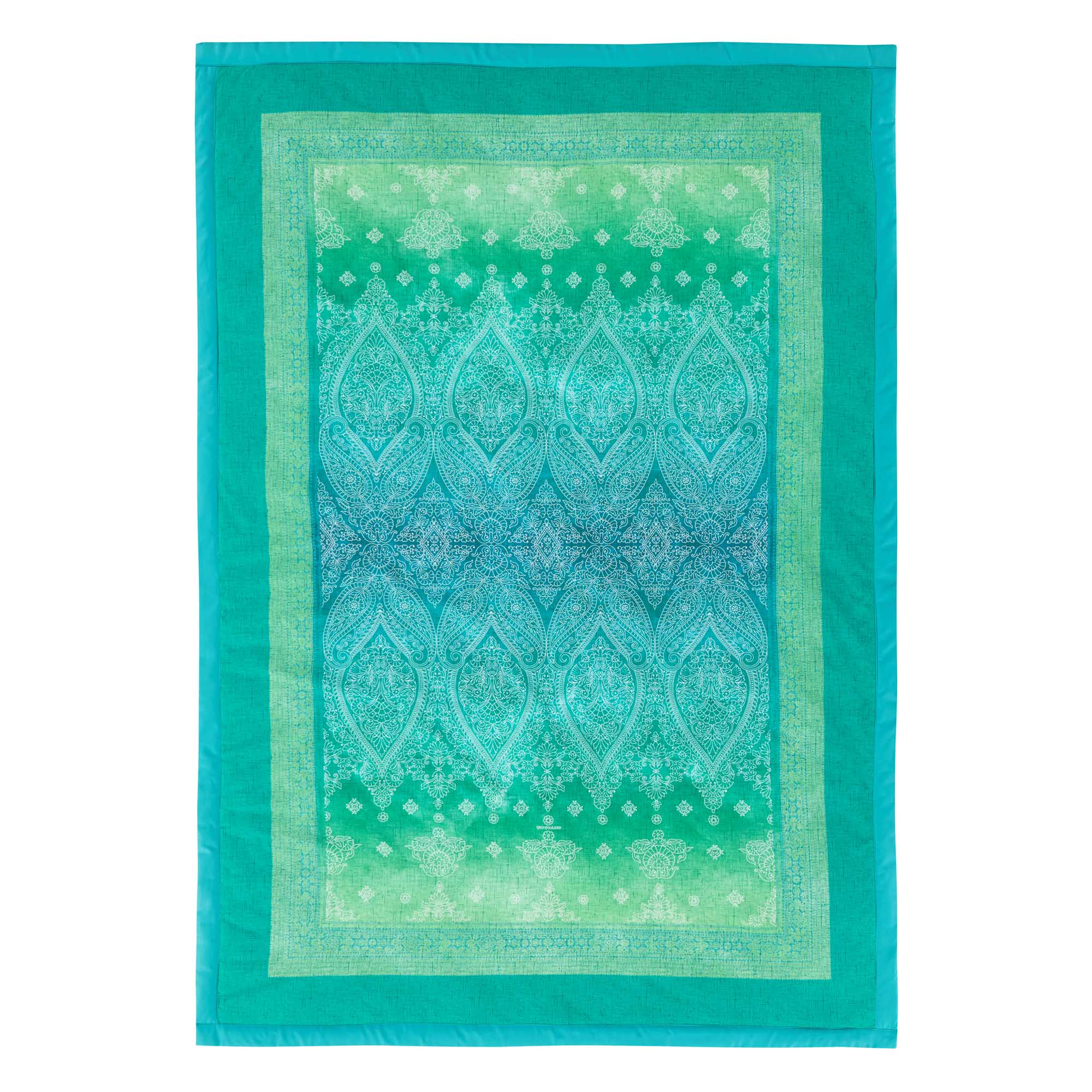Entdecken Sie unser elegantes Bassetti Plaid Kerala V1, das mit seinem raffinierten Dessin einen Hauch von Luxus in Ihr Zuhause bringt. Inspiriert von den charakteristischen Dekorelementen des Granfoulard-Stils, vereint dieses Plaid Kerala V1 matte Farben und zarte Linien zu einem kunstvollen Arrangement. Detaillierte ornamentale Medaillons, die Paisleymuster und florale Elemente darstellen, verleihen dem Plaid eine besondere Anmut nach den Ansprüchen von Bassetti. Der klassische, verblasste Hintergrund hebt die kunstvollen Motive hervor und sorgt für eine harmonische Tiefe. In einer sommerlichen Farbstimmung aus Smaragd, Minze und Grasgrün strahlt dieses Plaid Kerala V1 Frische und Lebendigkeit aus und verwandelt jeden Raum in eine einladende Oase. Ob als stilvoller Überwurf auf dem Sofa oder als dekorativer Akzent auf dem Bett – es bietet nicht nur Komfort, sondern auch einen Blickfang für Ihr Interieur. Gönnen Sie sich dieses exquisite Stück und genießen Sie die perfekte Kombination aus Eleganz und Behaglichkeit von Bassetti in Ihrem Wohnraum.