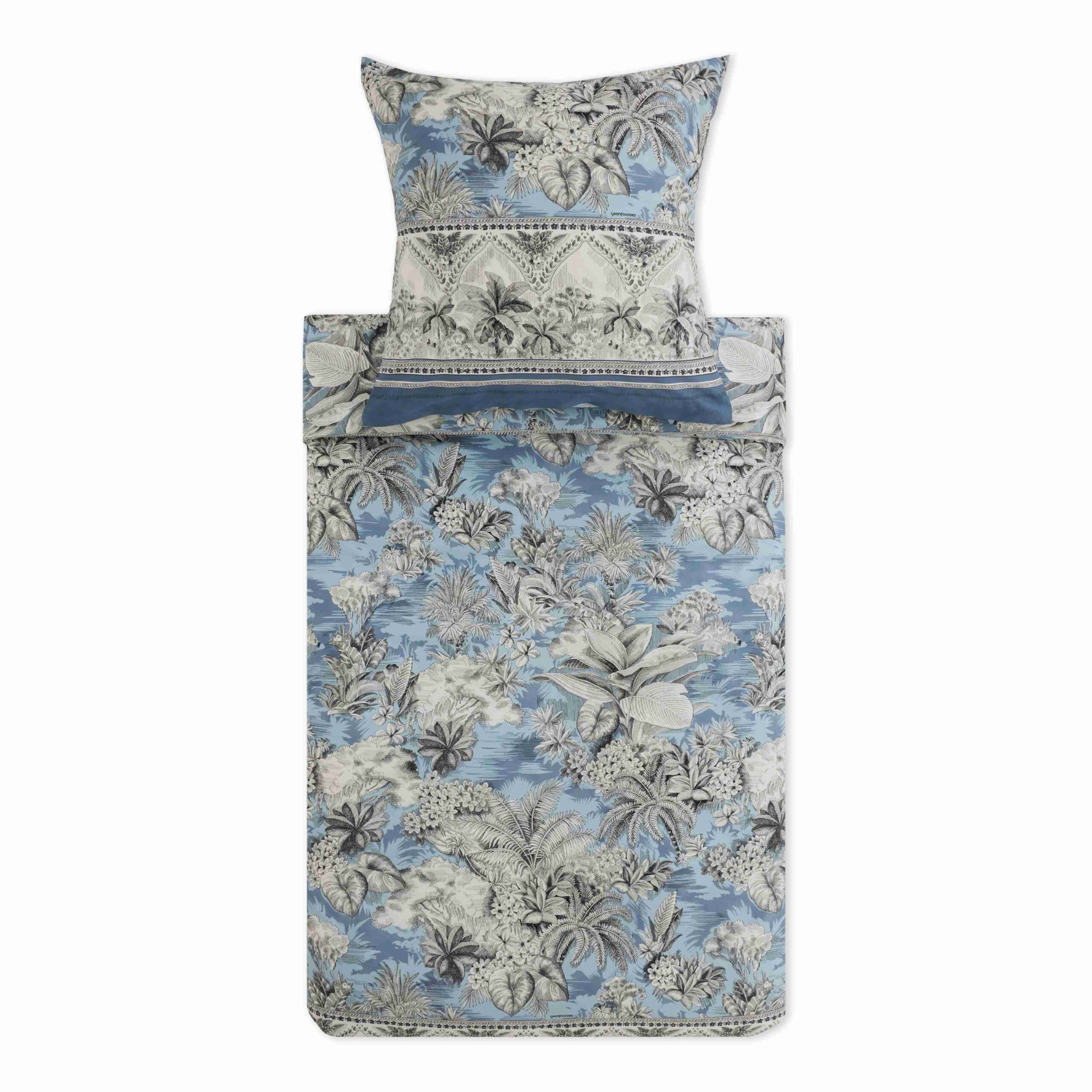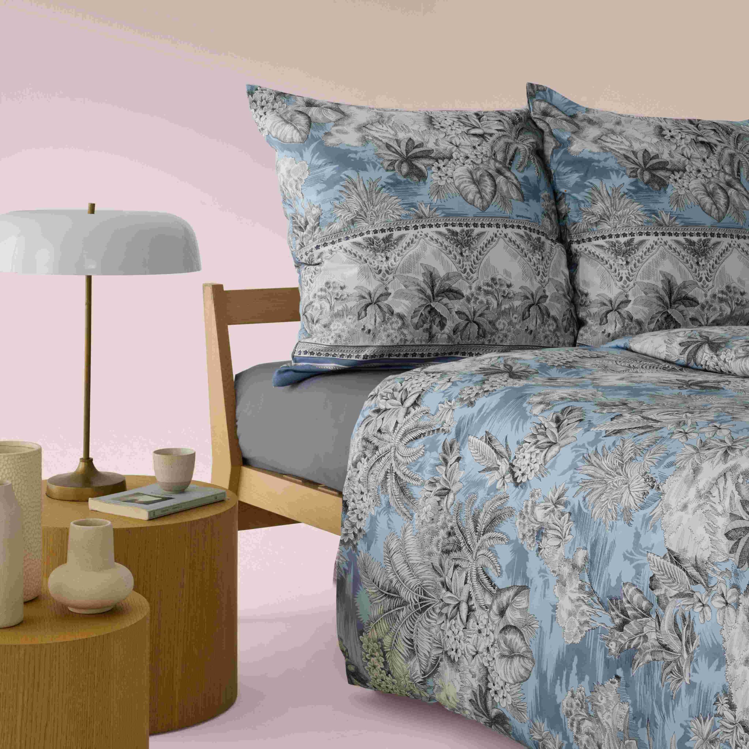 Eleganz, so klar und erfrischend wie eine Brise am frühen Morgen: Die Bassetti Bettwäsche Boboli C1 der Variante C1 ist die raffinierte Antwort auf die Sehnsucht nach sommerlicher Kühle. Der Hintergrund in sanftem Hellblau erinnert an den weiten Himmel über der Riviera. Darauf entfaltet sich ein botanisches Meisterwerk: Weiße und tiefschwarze Konturen zeichnen eine dichte tropische Flora nach, die durch die präzisen Bordüren eine fast architektonische Strenge erhält. Diese Farbkombination wirkt ungemein modern und beruhigend zugleich. In dieser Bettwäsche zu schlafen fühlt sich an wie eine Nacht in einer luxuriösen Villa am Wasser, wo die Schatten der Palmen im Mondlicht auf die hellen Böden fallen. Ein Design für Ästheten, die dezente Luxus-Nuancen schätzen und ihr Schlafzimmer in einen Ort vollkommener Klarheit und stilvoller Ruhe verwandeln möchten.