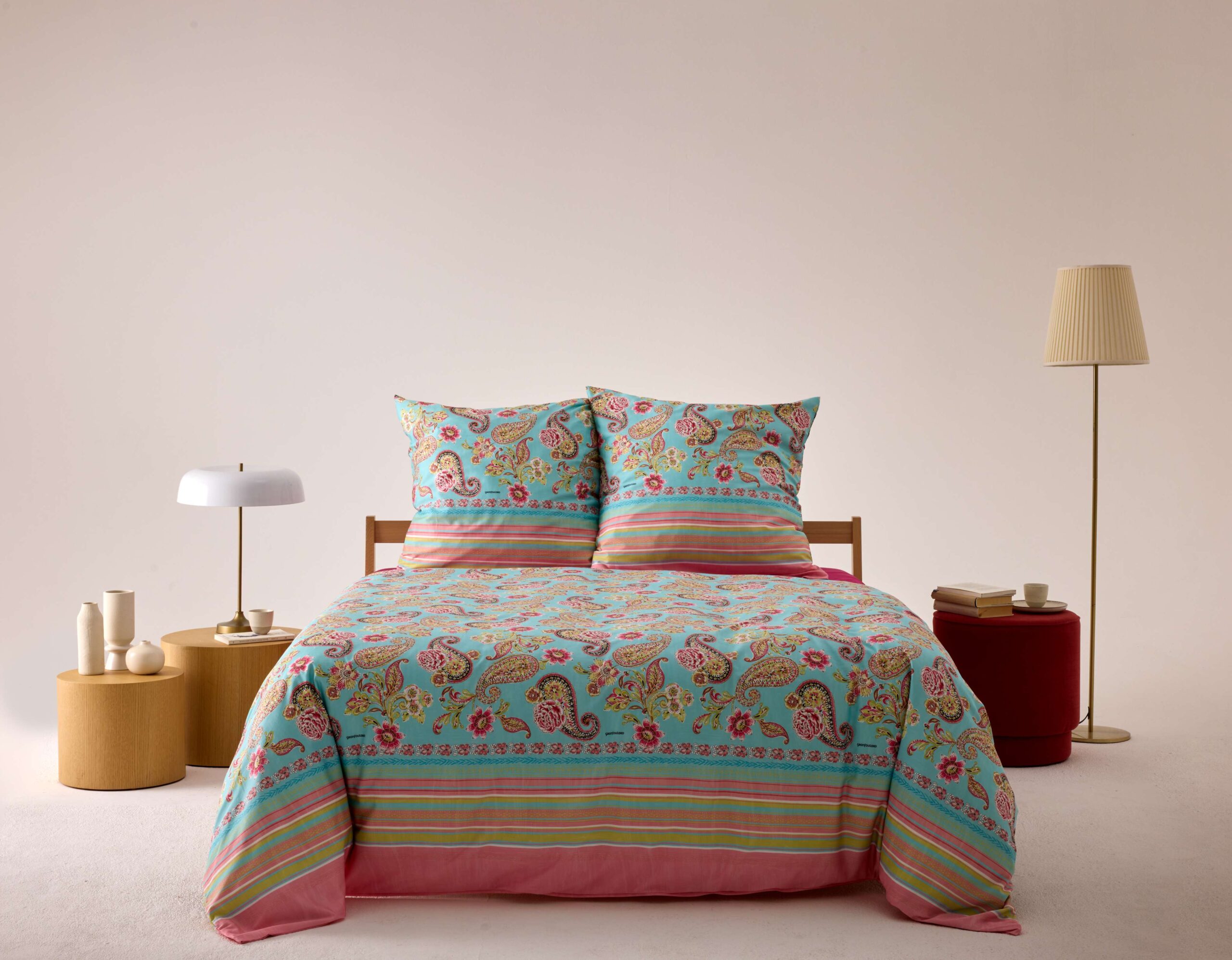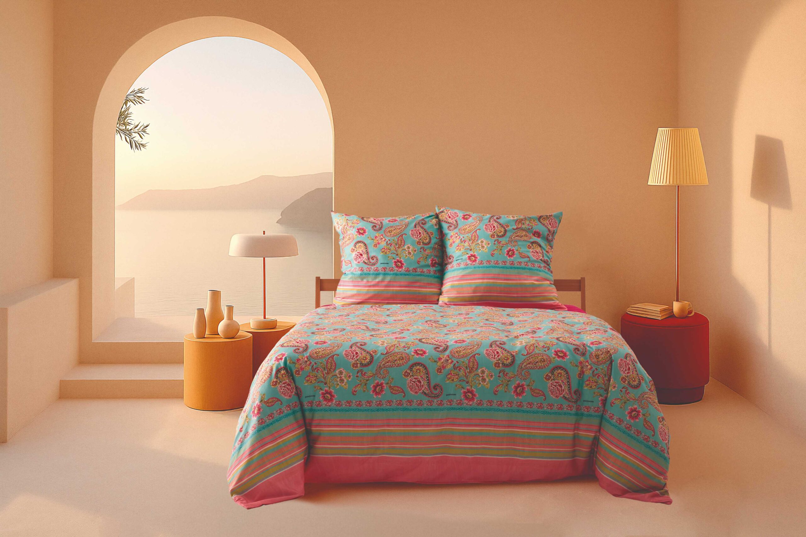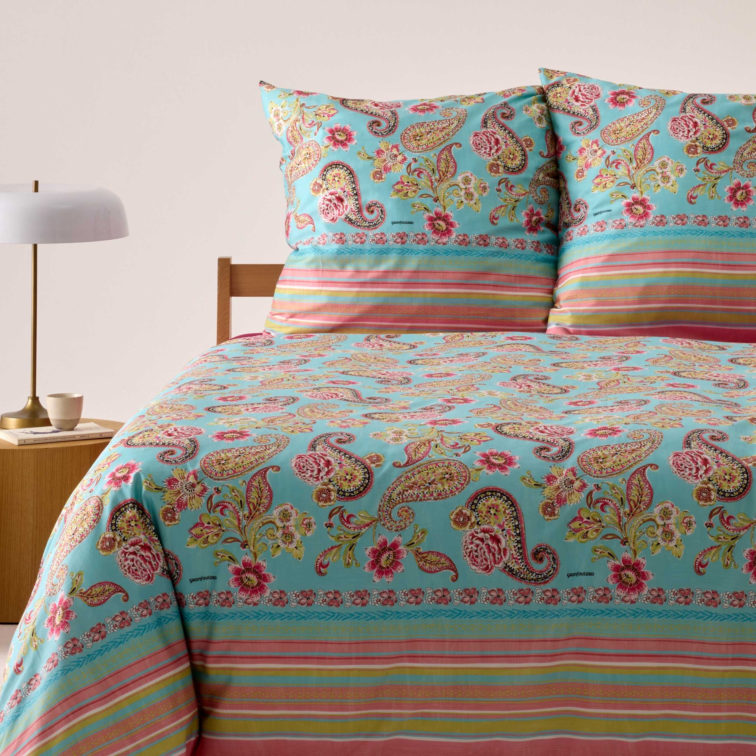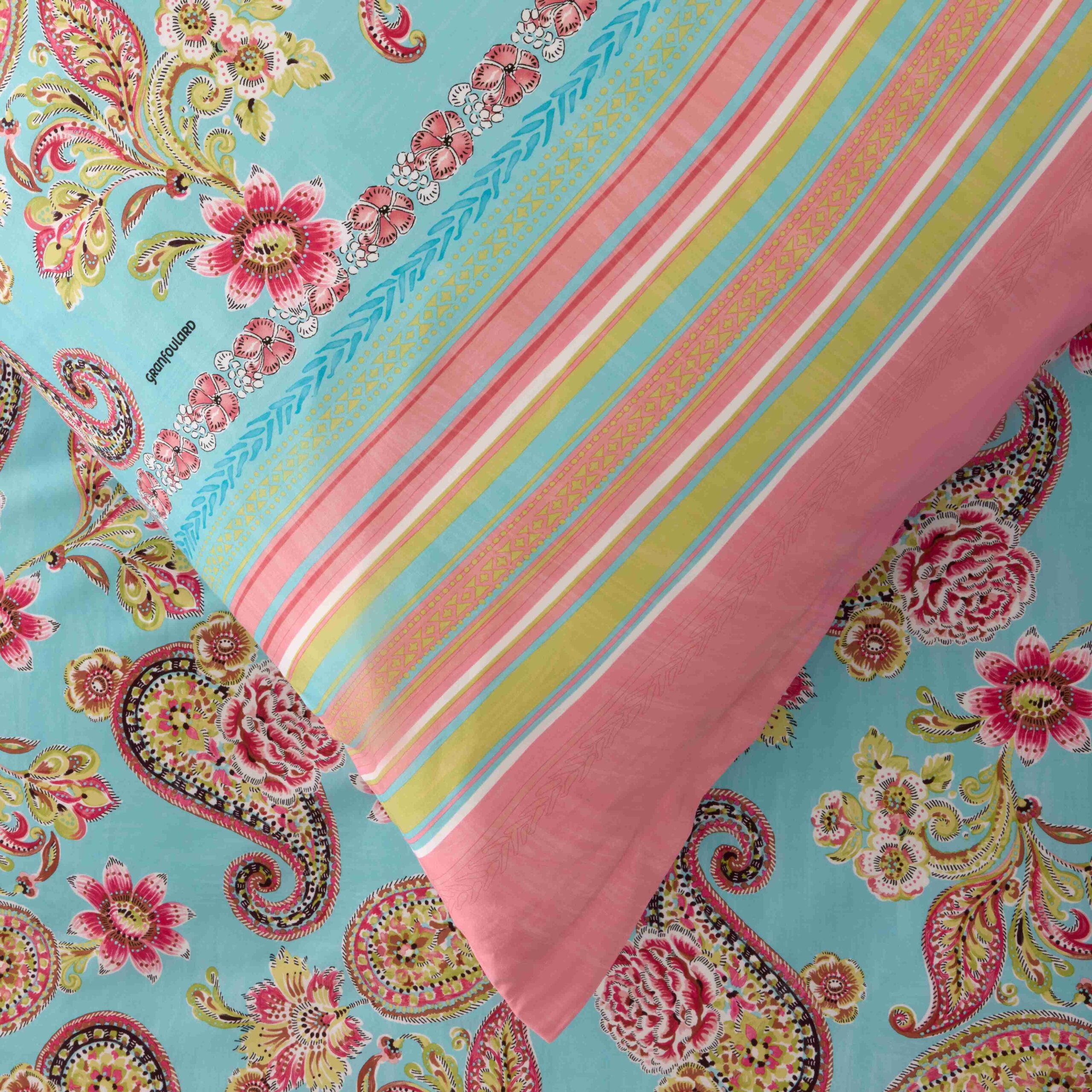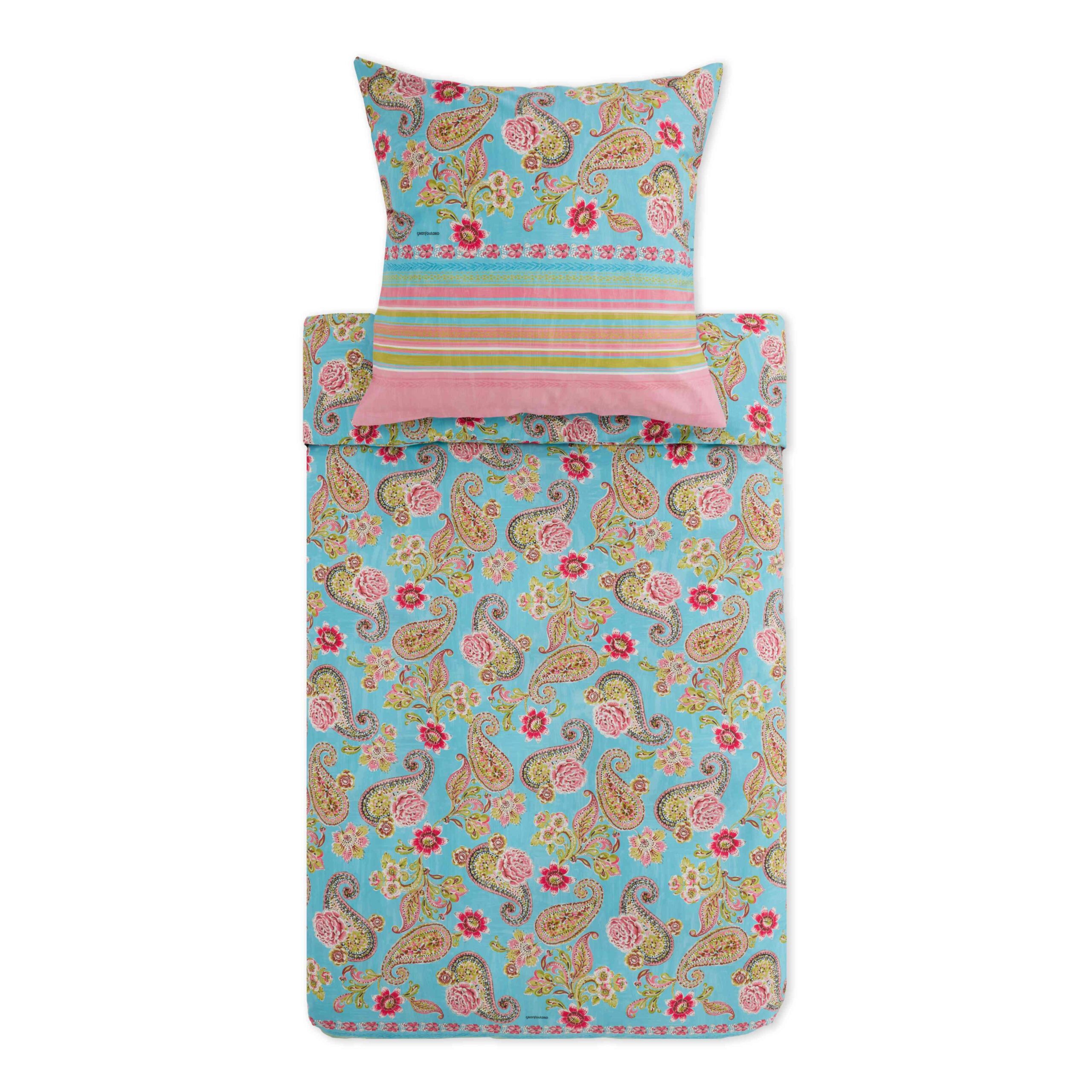 Erleben Sie den Sommer auf Ihrem Bett: Die Bassetti Bettwäsche Rapallo T1 aus 100 % reiner Baumwolle verbindet höchsten Komfort mit einem lebendigen, handgemalten Aquarell-Paisley-Muster. In den frischen, sommerlichen Farben Türkis, Fuchsia und Kiwi Rose erinnert das Design an die strahlende Leichtigkeit der mediterranen Strände, an Sonne, Meer und bunte Sonnenschirme. Der Druck wurde mit sorgfältig ausgewählten Farben umgesetzt, sodass die intensiven Töne lange leuchtend bleiben. Hergestellt in Italien, vereint die Bettwäsche traditionelles Handwerk mit modernem Stil und bringt italienische Eleganz direkt ins Schlafzimmer. Die Kombination aus weicher Baumwolle und lebendigen Farben schafft ein unvergesslich frisches Schlaferlebnis – für Momente, in denen man sich wie in einem sonnigen mediterranen Garten fühlt.