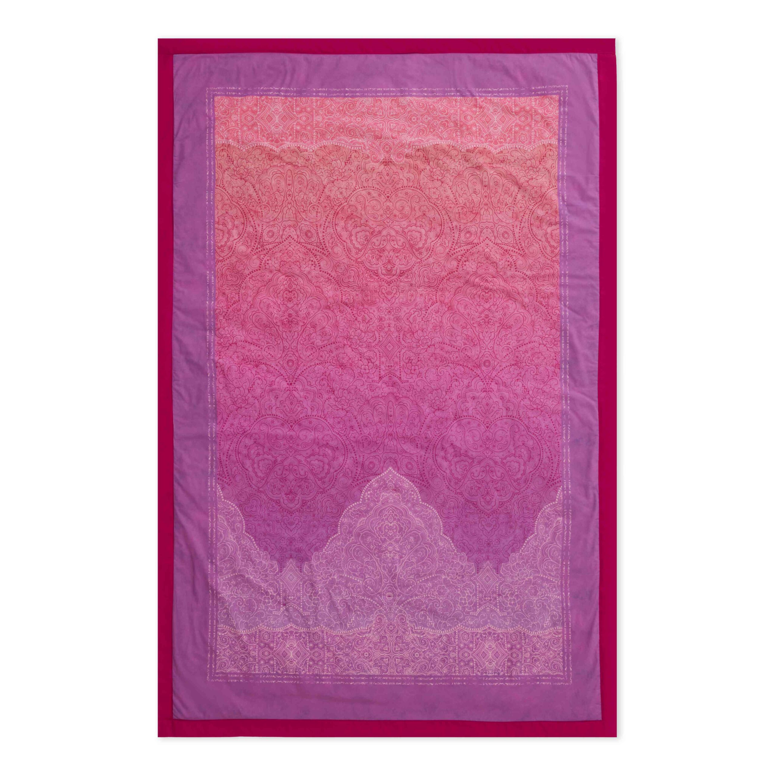 Die Bassetti Plaid Dolceacqua P1: Ausdrucksstark und dekorativ präsentiert sich das Dolceacqua Plaid vP1 in warmen Rotnuancen fließend in zartes als Sonnenuntergangs-Farbverlauf von Granfoulard Bassetti. Das kontinuierliche Paisley-Motiv des Dolceacqua Plaid vP1 Dessins entfaltet sich hier in einer warmen, leuchtenden Farbwelt. Die intensiven Rot- und Lilatöne verschmelzen harmonisch miteinander und verleihen dem Plaid eine sinnliche, beinahe schimmernde Oberfläche. Die geschwungenen Ornamentformen wirken weich und dennoch präzise ausgearbeitet. Der helle Volant setzt einen strahlenden Kontrast und verleiht dem Dolceacqua Plaid vP1 eine klare Rahmung. Als vielseitiges Wohnaccessoire bringt dieses Plaid der Dolceacqua vP1 Kollektion Glamour und mediterrane Wärme ins Interieur. Granfoulard Bassetti gelingt es, traditionelle Ornamentik in eine moderne, emotionale Farbkomposition zu überführen – stilvoll, markant und unverkennbar.