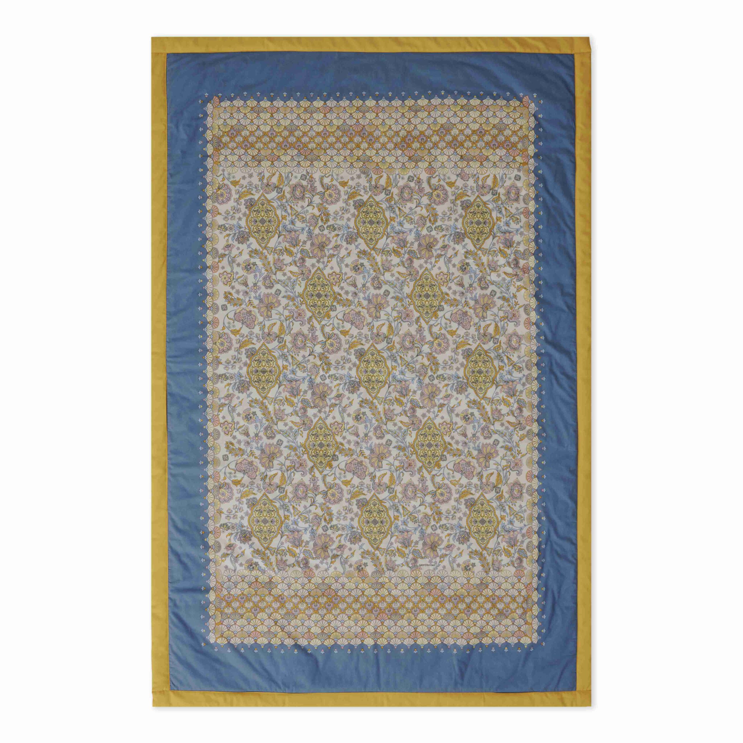 Das Bassetti Plaid Tigullio C1 aus 100 % Baumwolle bringt die sonnige Gelassenheit der italienischen Riviera direkt in Ihr Zuhause. Inspiriert von den eleganten Gärten der Villa Durazzo in Santa Margherita Ligure, vereint das Design zarte fächerförmige Blüten mit feinen Indienne-Ramage-Motiven und ornamentalen Medaillons. In sanften Blau- und Gelbtönen wirkt es frisch, leicht und einladend. Dank seines zarten Materials ist das Plaid vielseitig einsetzbar – als eleganter Überwurf auf Sofa oder Bett, als kuscheliger Begleiter beim Picknick oder als dekorativer Akzent auf Balkon oder Terrasse. Der verspielte Volant verleiht dem Plaid eine lebendige, luftige Bewegung. Holen Sie sich die italienische Sommerleichtigkeit nach Hause – dieses Plaid ist ein Hauch von mediterraner Sonne für jeden Moment.