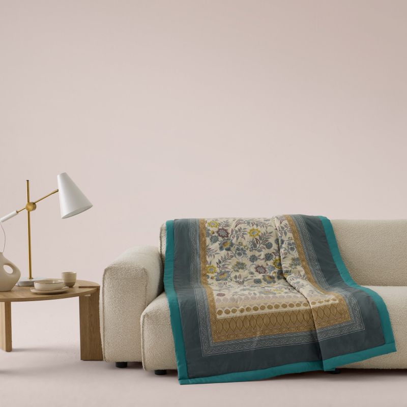 Das Bassetti Plaid Varigotti V1 in der Farbvariante Natural von Granfoulard Bassetti Dessins interpretiert das ikonische Varigotti Dessin in einer besonders harmonischen, naturverbundenen Ausdrucksform. Inspiriert von den üppigen Pallanca-Gärten von Bordighera, verbindet dieses Plaid botanische Opulenz mit einer sanften, erdigen Farbwelt aus Sand-, Salbei- und Goldtönen. Das Ergebnis ist ein Wohnaccessoire, das Ruhe, Kontinuität und zeitlose Eleganz ausstrahlt. Das in Batik-Technik gezeichnete Blumenmuster des Varigotti V1 Plaid Dessins entfaltet sich auf dem Plaid mit weicher Tiefe. Exotische Blüten, filigrane Blätter und geschwungene Ranken verschmelzen zu einer ausgewogenen Komposition, die Leichtigkeit und Struktur zugleich vermittelt. Die charakteristische Volant-Bordüre mit geometrischen und naturinspirierten Elementen rahmt das Varigotti Plaid V1 stilvoll ein und unterstreicht die textile Handschrift von Granfoulard Bassetti. In der Natural-Variante steht das Varigotti Plaid V1 von Bassetti Dessins für das Re-Store-Prinzip der Kollektion: Bewährte Motive werden bewahrt und in einer zeitgemäß reduzierten Farbigkeit neu belebt. Ob über Sofa, Sessel oder als eleganter Akzent am Fußende des Bettes – das Varigotti Plaid in Natural bringt mediterrane Gelassenheit und kultivierte Wohnlichkeit in jedes Interieur.