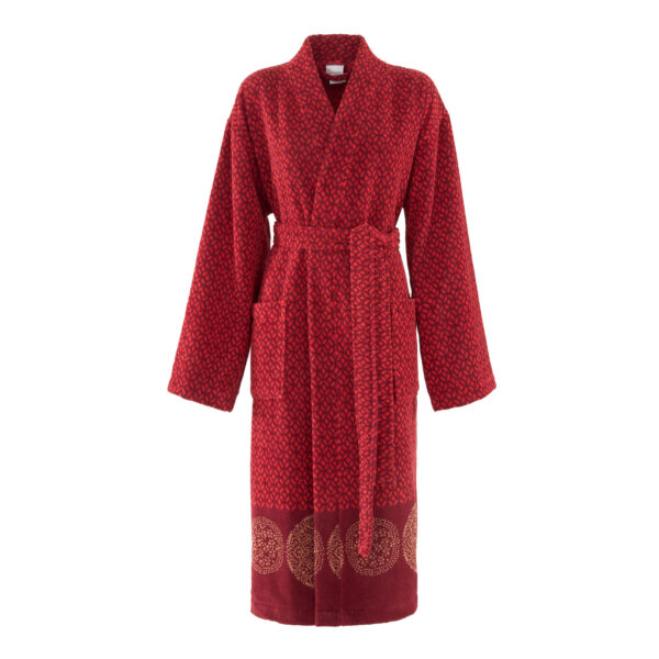 Vom ersten Berührungspunkt ihrer Haut erinnert Sie der Bassetti Bademantel Pallavicino R1 von Bassetti mit seinen tiefen und leicht schattierten Farbhintergründen erinnert an die florale Schönheit des Pallavicino-Parks in Stresa. Bassetti steht hierbei für die höchste italienische Qualität, da der Pallavicino Bademantel aus 100% Baumwolle (380 gr/m²) besteht und somit vom ersten bis zum letzten Tragen für ein angenehmes Gefühl auf Ihrer Haut sorgt. Das Dessin mit den Farbhintergründen unterstreicht die Eleganz der Verzierungen des Bassetti Pallavicino Bademantels R1. Zudem wechseln sich zarte florale Stickereien mit kreisförmigen Geometrien im griechischen Stil auf dem Volant ab. Die Farbvariante dieses Pallavicino Bademantels R1 verbindet lebhafte und warme Armarant- und Burgundertöne, welche in Zinnoberrot übergehen. Der Pallavicino Bademantel R1 ist zudem in verschiedenen Größen erhältlich und lässt sich wunderbar mit den Pallavicino Handtüchern von Bassetti kombinieren.