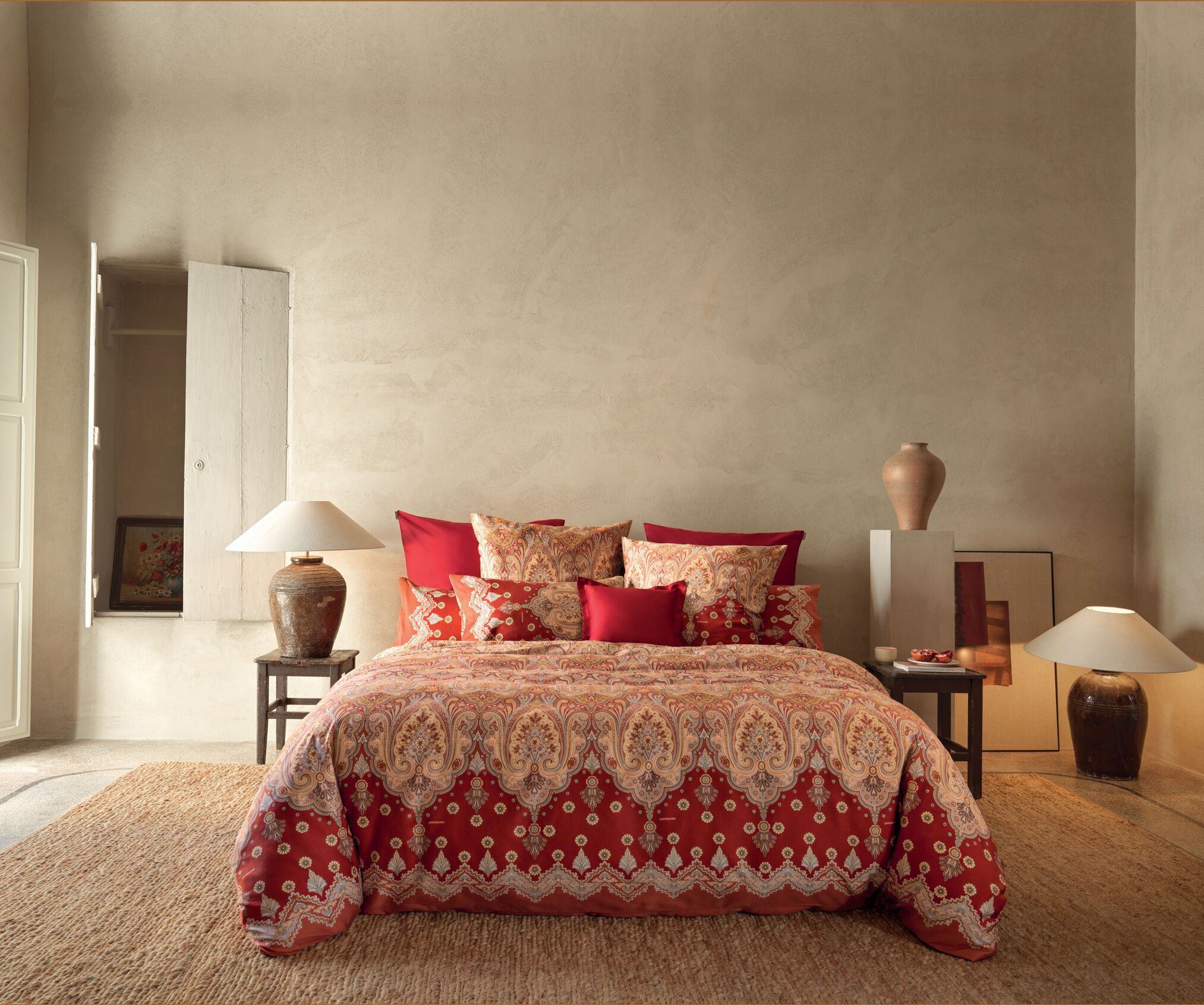 In der Bassetti Bettwäsche Isolabella R1 findet sich ein klassiches Paisleymotiv wieder, welches Sie vom ersten Moment an in den italienischen Barockgarten der Isola Bella am Lago Maggiore versetzt. Weiche Wirbel mit kostbaren Pflanzendetails umhüllen dekorative Elemente und kleinere Blumenmotive. Die Isolabella Bettwäsche R1 von Bassetti überzeugt mit ihrer Schlichtheit und einen Farbwechsel, welcher durch ein Chevron aus Mikromotiven gekennzeichnet ist. In dieser Farbvariante der Isolabella Bettwäsche R1 wurde ein intensives Ziegelrot und ein lebendiges Goldgelb miteinander verbunden. Bassetti sorgt mit 100% reinem Baumwollsatin (110 Fäden pro cm²) und beständigen Farben im Druck für die höchstmögliche italienische Qualität. Die Isolabella Bettwäsche R1 lässt sich zudem wunderbar mit Satin-Kissen mit vier Volants kombinieren und ist in verschiedenen Größen erhältlich.