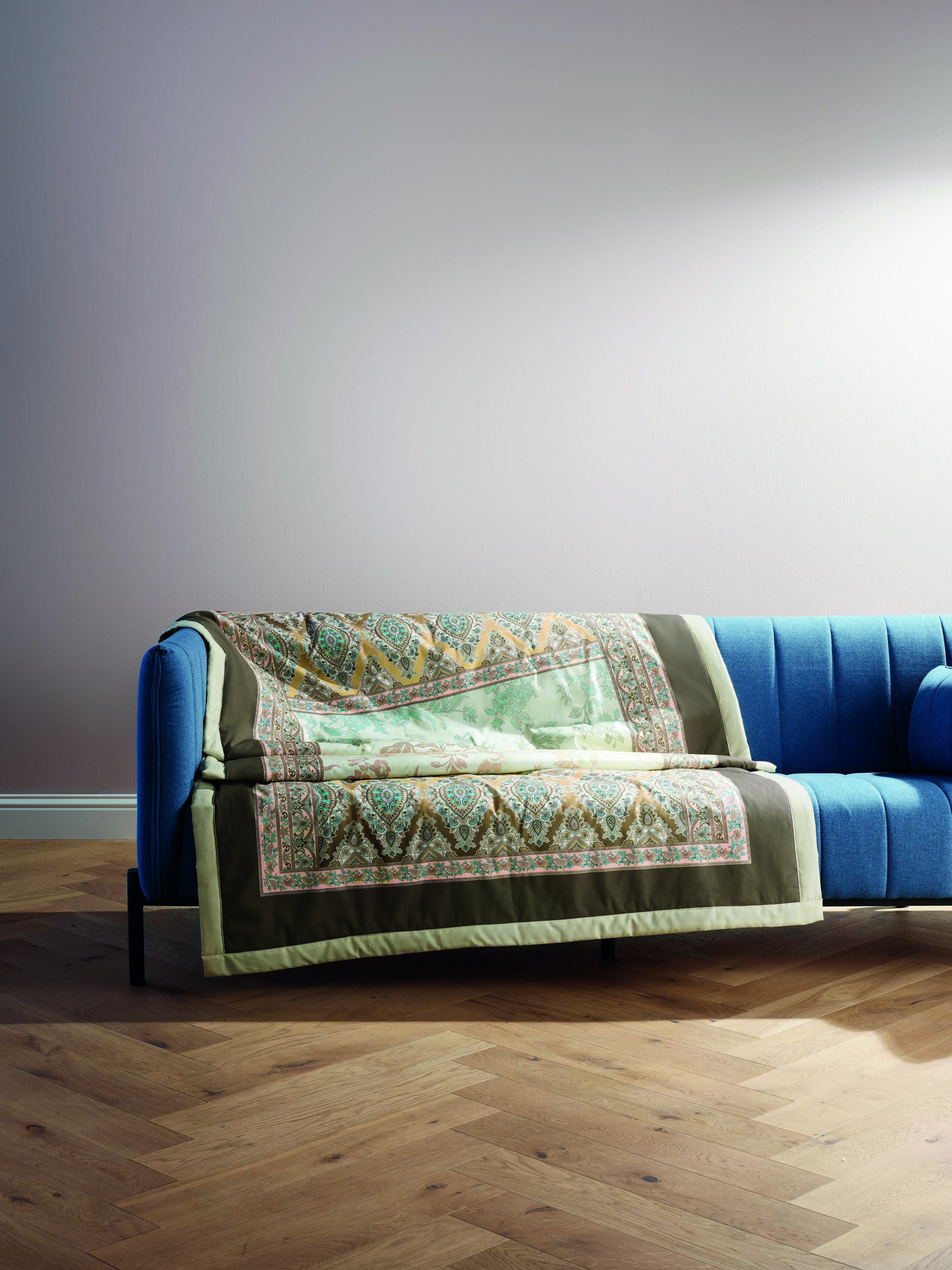 Die Herbst-Winter-Kollektion 2024 von Bassetti präsentiert das neue Bassetti Foulard Agrigento 42, ein Dessin, das eine Hommage an die Blumen Siziliens darstellt. Inspiriert von den blühenden Mandelbäumen im Tal der Tempel in Agrigent, der Bougainvillea auf den Äolischen Inseln und dem Ginster an den Hängen des Ätna, entsteht ein florales Muster von großer Wirkung. Dieses Design wird durch schattierte Töne und ein Gewirr von kostbaren, in Medaillons angeordneten Dekorationen bereichert. Die erste neue Farbversion des Granfoulard Agrigento 42 von Bassetti kombiniert die weichen, natürlichen Nuancen von Leder und Tauwerk. Diese warmen und erdigen Töne schaffen eine einladende und behagliche Atmosphäre, die jedes Zuhause verschönert. Die harmonische Kombination dieser Farben vermittelt ein Gefühl von Ruhe und Komfort, während das florale Muster an die natürliche Schönheit Siziliens erinnert. Verleihen Sie Ihrem Zuhause mit dem Granfoulard Agrigento 42 von Bassetti eine elegante und zeitlose Note.