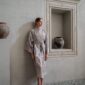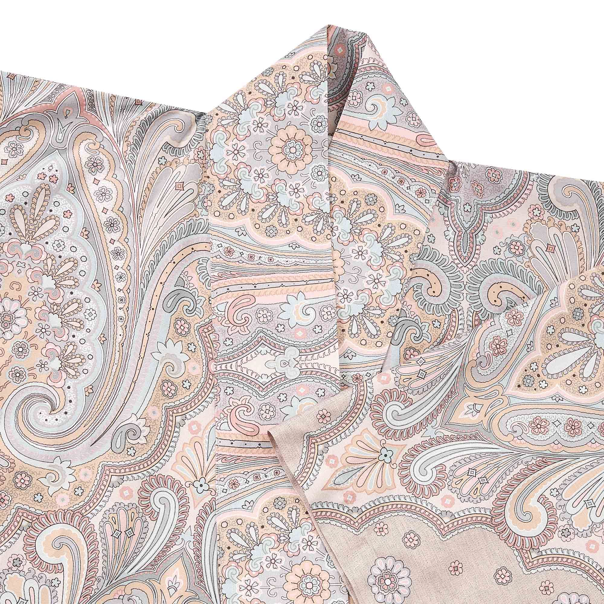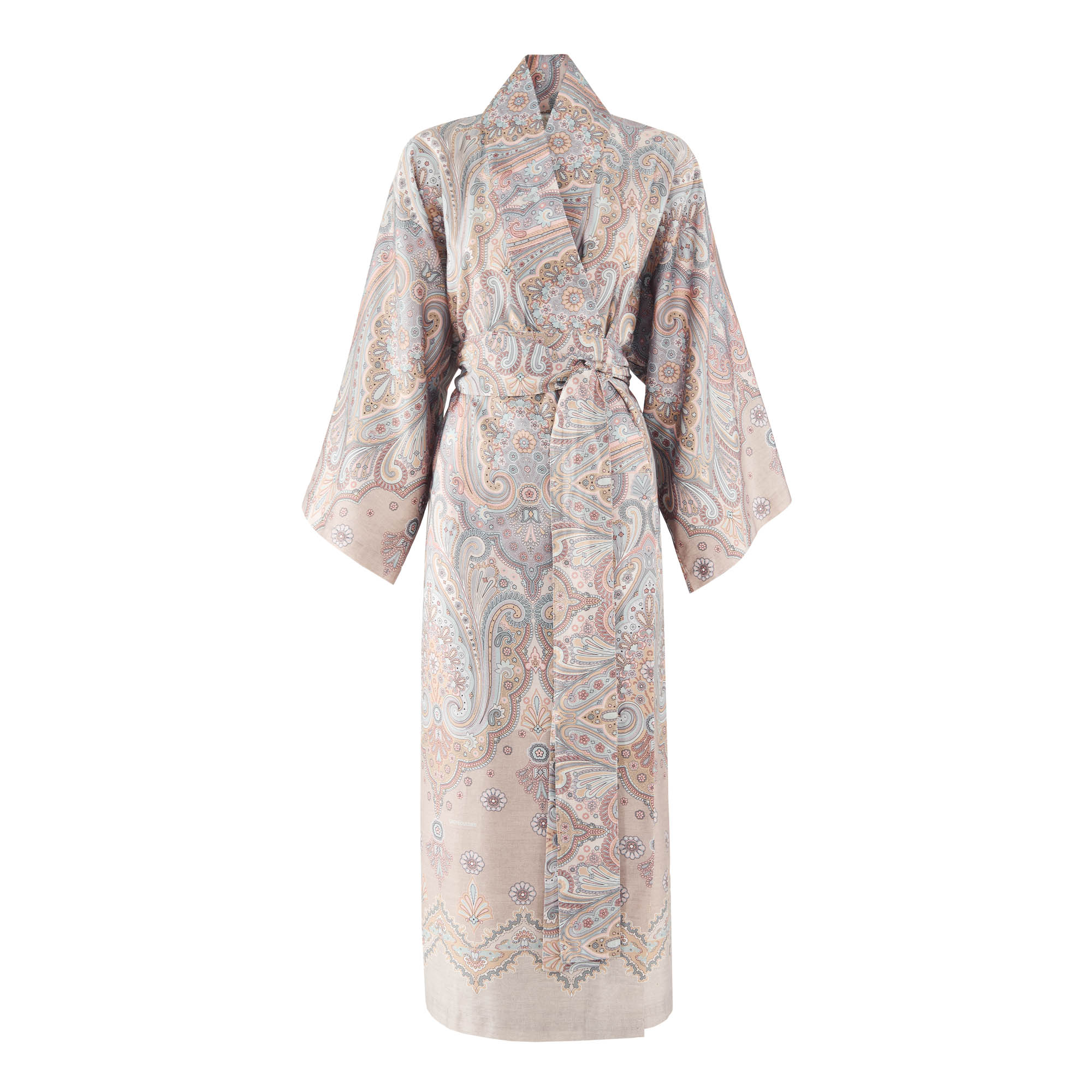 Bassetti entführt uns in den italienischen Barockgarten der Isola Bella am Lago Maggiore mit dem Bassetti Kimono Isolabella 41. Ein klassisches Paisleymotiv wird im traditionellen Granfoulard-Stil interpretiert, der sich an der Vegetation der Insel orientiert. Die weichen Wirbel, die mit kostbaren Pflanzendetails angereichert sind, umhüllen die dekorativen Elemente und die kleinen Blumen. Die Schlichtheit des Volants wertet das Ganze durch einen Farbwechsel auf, der durch einen Chevron aus Mikromotiven gekennzeichnet ist. Der Isolabella Kimono 41 ist in sanften Beige-Tönen gehalten und wird mit einem Taubengrau kombiniert, sowie durch einen Hauch von Olivgrün belebt. Diese Farbkombination von Bassetti schafft eine gedämpfte Atmosphäre, die ein Gefühl von Ruhe und Gelassenheit vermittelt. Ein weiteres Symbol für die Qualität von Bassetti wird durch die Geschenkverpackung erzeugt, in die der Isolabella Kimono 41 verpackt wird.