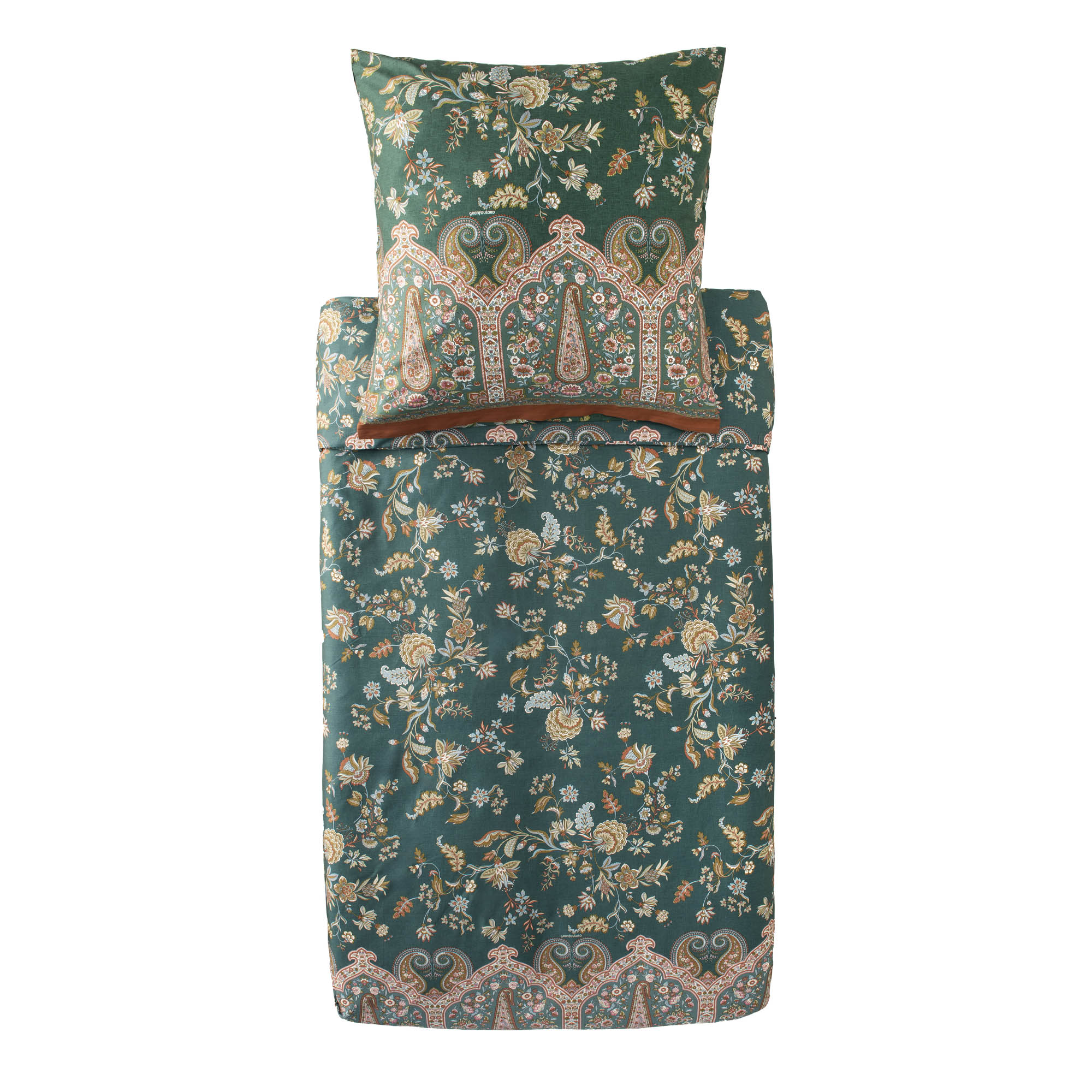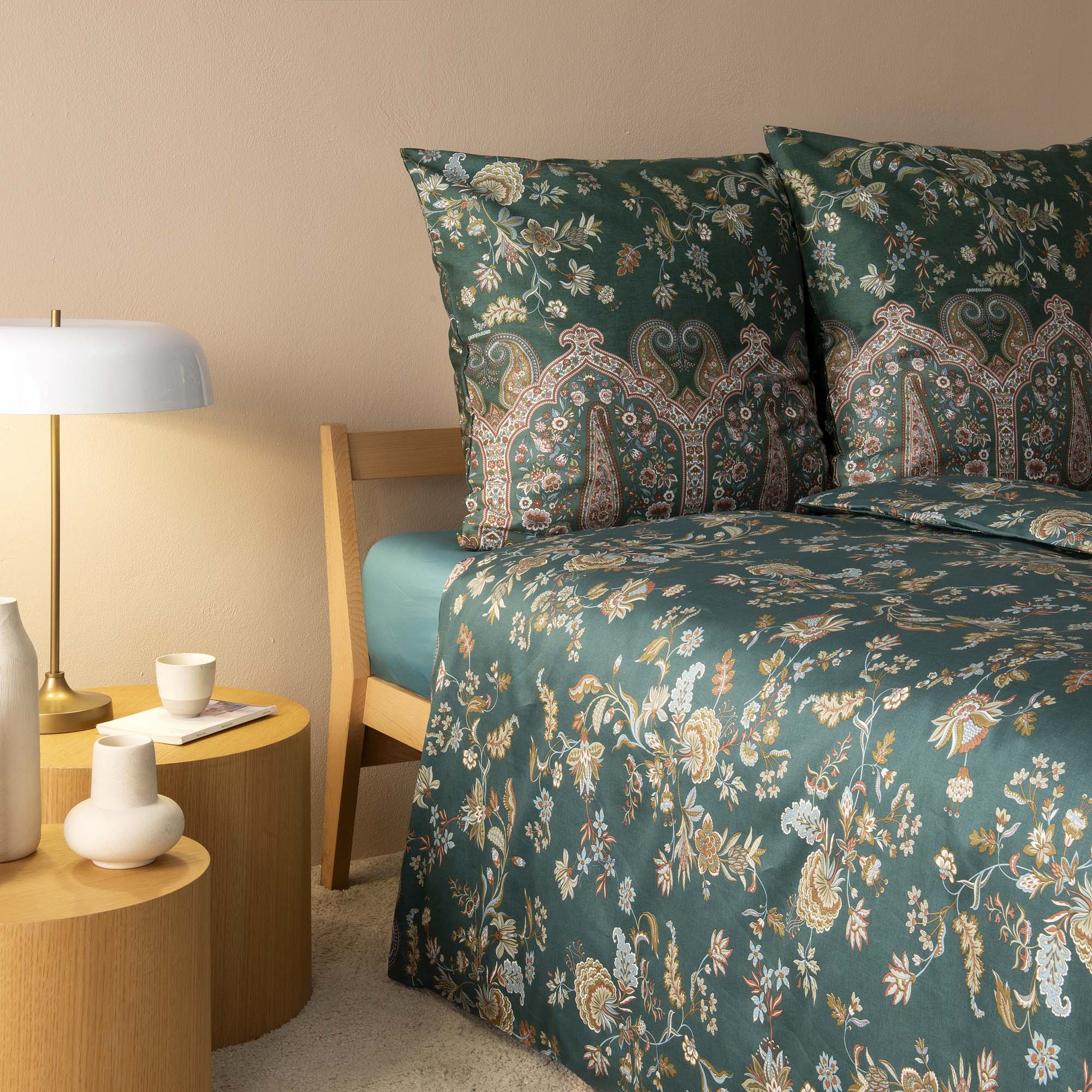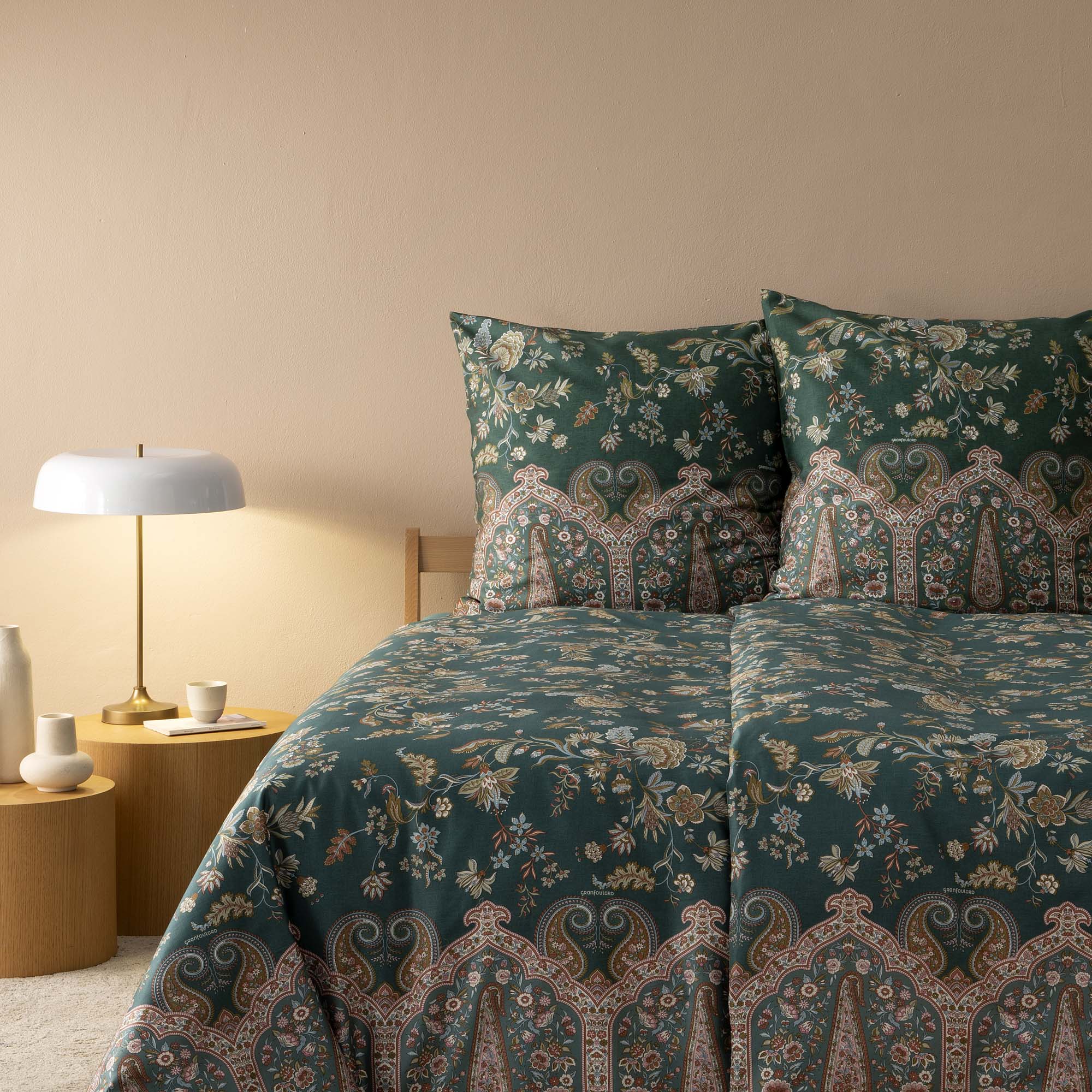 Ein stilisierter „Baum des Lebens“, geprägt von orientalischem Einfluss und inspiriert von persischer wie indischer Textilkunst, durchzieht die Bettwäsche Indian Roses V1 als fein verzweigtes Ramage.