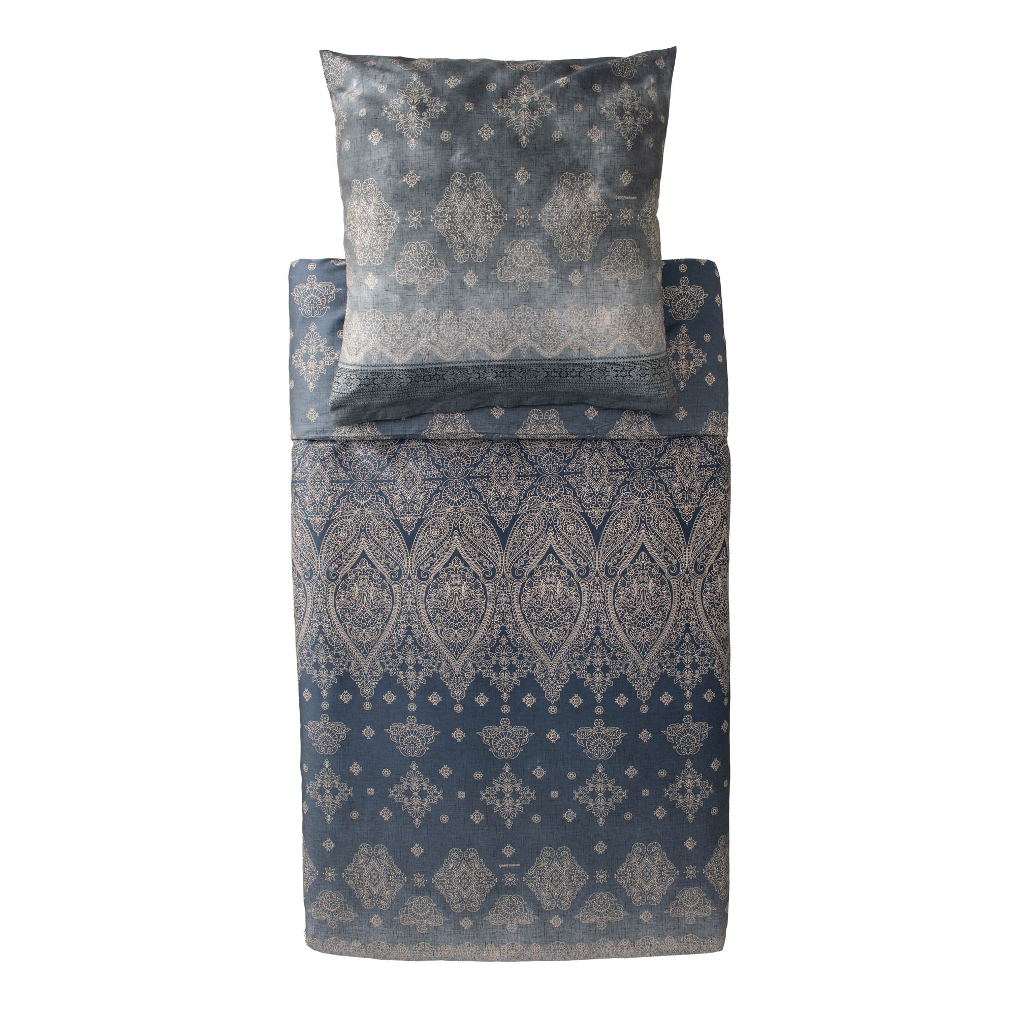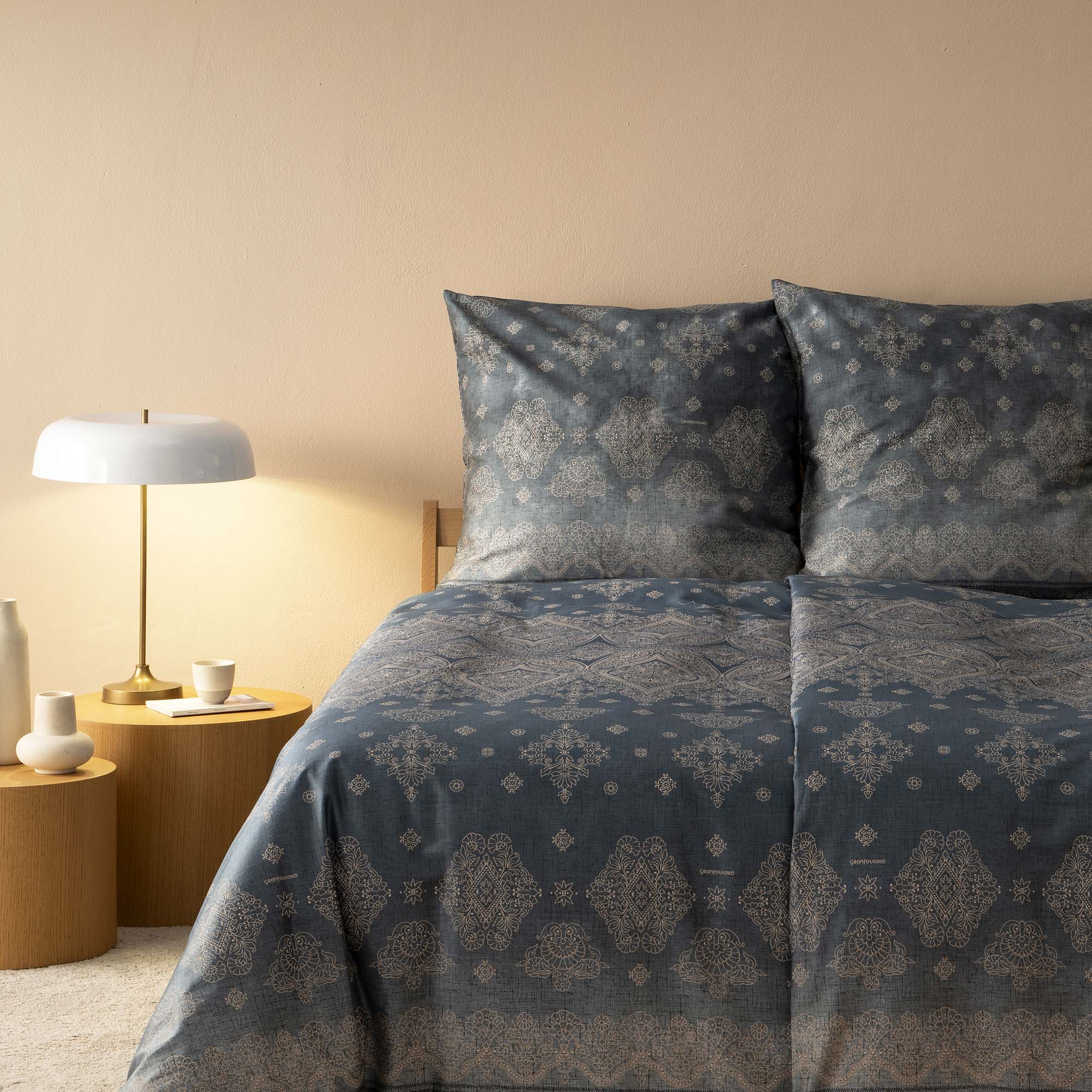 Die Bassetti Bettwäsche Kerala G1 ist von der malerischen Landschaft Siziliens, zwischen Palermo und Agrigento, inspiriert. Ihr außergewöhnliches Design reflektiert normannische und barocke Einflüsse. In den edlen Farben Marineblau und Silber schafft sie in jedem Raum eine harmonische Atmosphäre und bietet gleichzeitig höchsten Schlafkomfort.