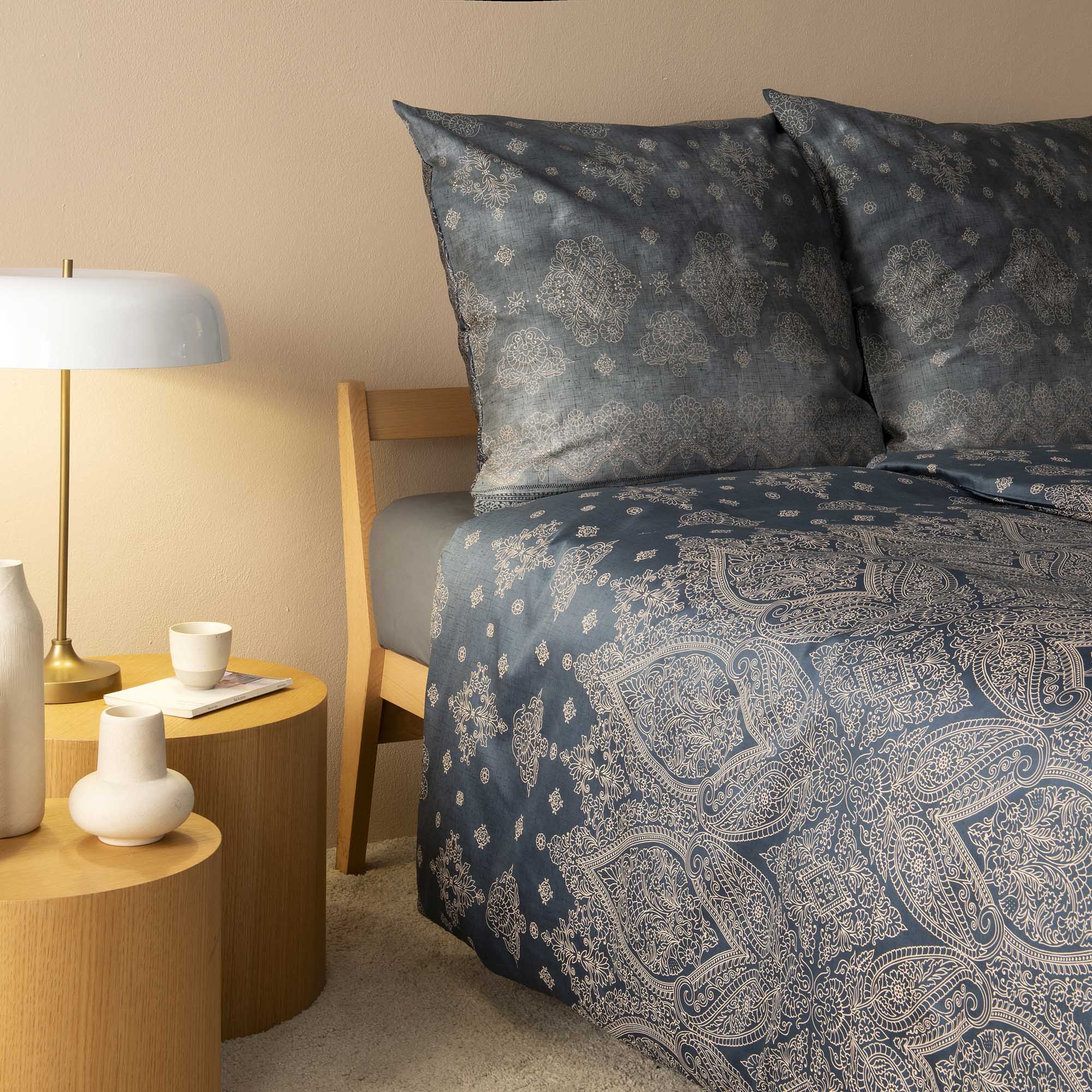 Filigrane Medaillons mit Paisley- und Blumenmotiven setzen stilvolle Akzente und verleihen Ihrem Schlafzimmer eine ruhige, elegante Ausstrahlung. Erleben Sie entspannende Nächte und verwandeln Sie Ihr Schlafzimmer mit der Bassetti Bettwäsche Kerala G1 in eine exklusive Wohlfühloase.