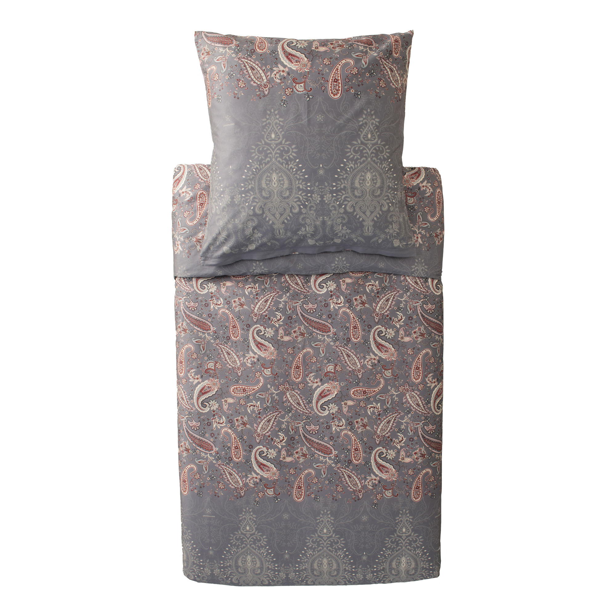 In einem harmonischen Farbspiel aus Silbergrau, zartem Flieder und dem Farbton tiefer Pflaume entfaltet sich eine ruhige, fast meditative Atmosphäre. Die Komposition der Bettwäsche Monnalisa G1 von Bassetti wird von einer feinen Borte aus filigranen Cashmere-Motiven eingefasst – weich, dezent und modern interpretiert.
