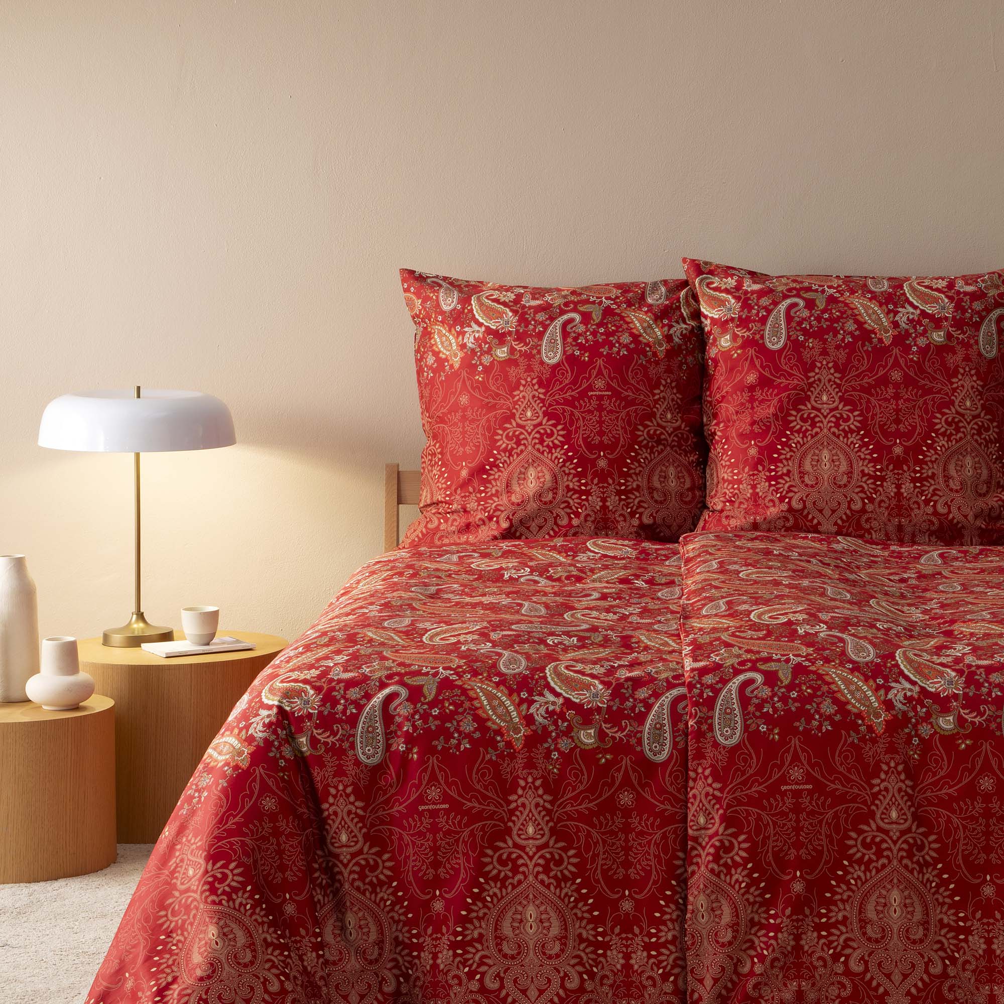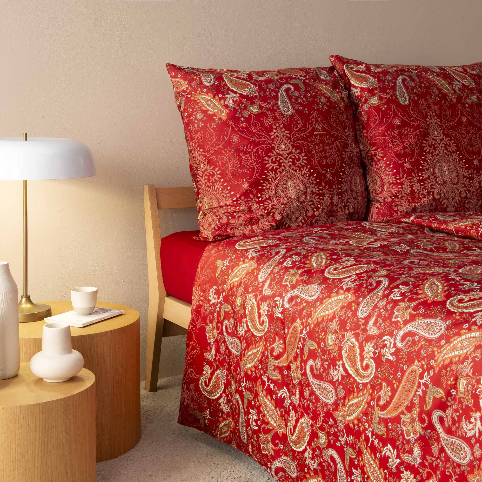 Das detailreiche Paisley-Muster der Bettwäsche Monnalisa R1 von Bassetti, inspiriert von Botticellis Flora und den florentinischen Stofftraditionen, wird durch eine zarte Borte mit filigranen Cashmere-Elementen elegant abgerundet.