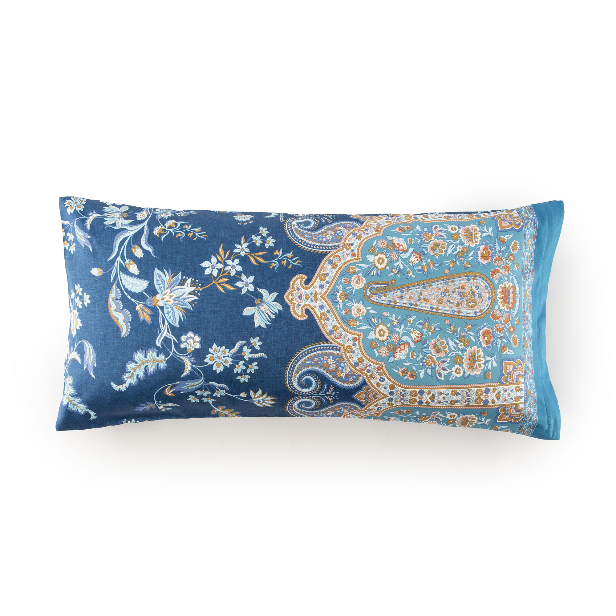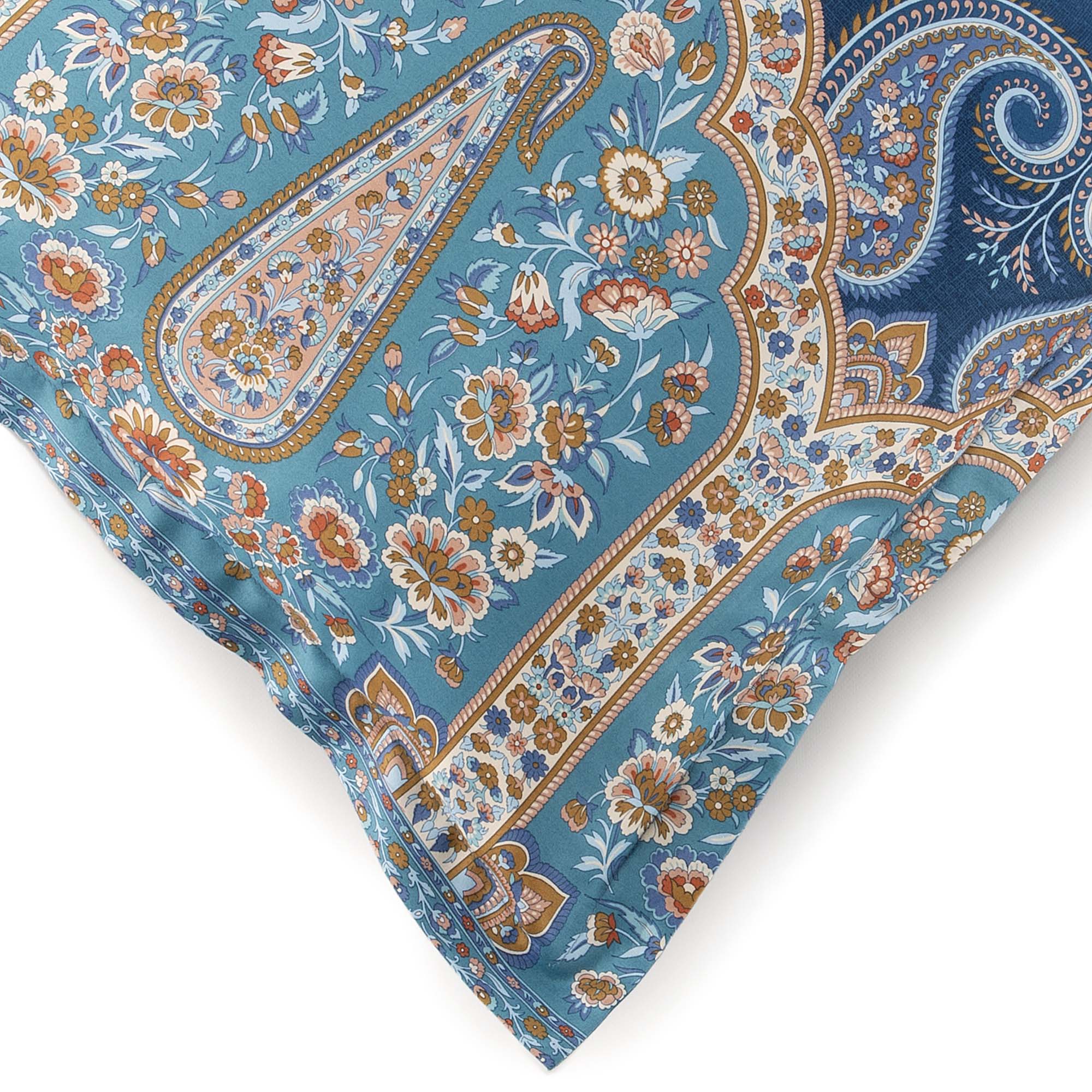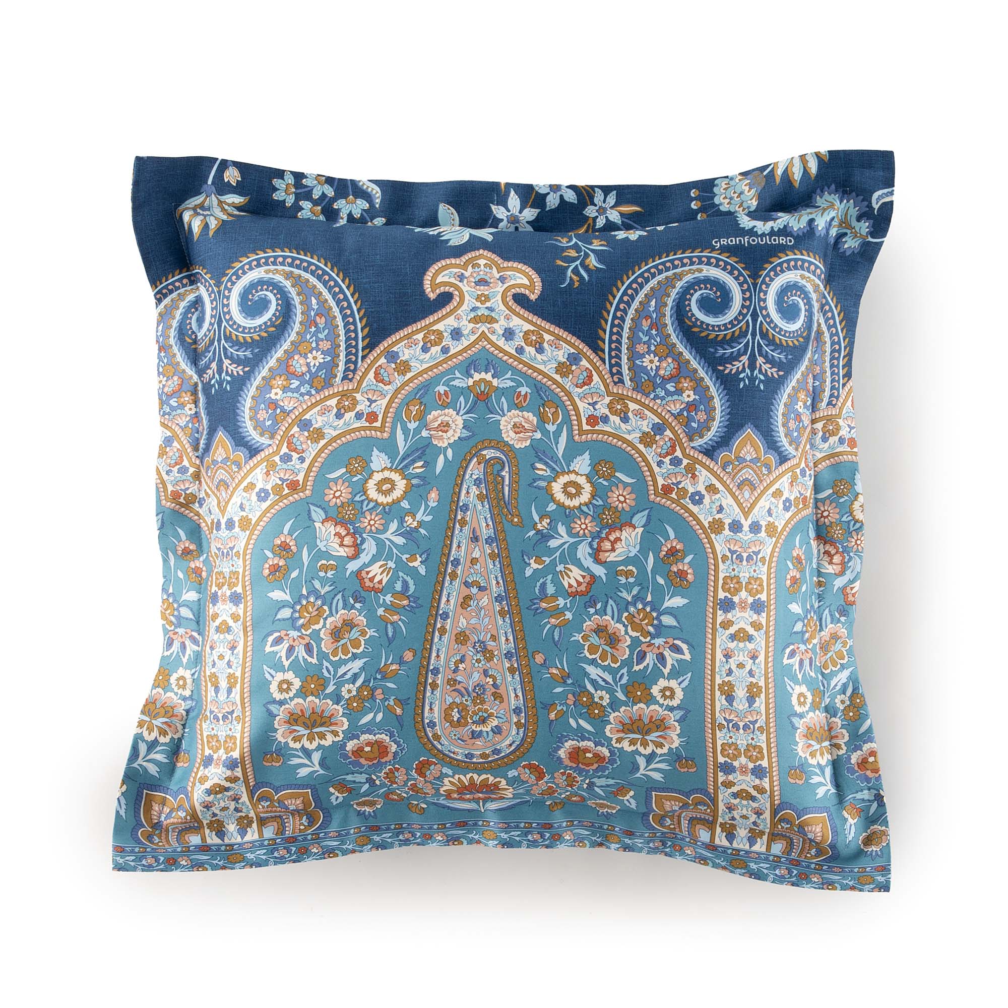 Die Bassetti Kissenhülle Indian Roses B2 verbindet mediterrane Frische mit der Ornamentik fernöstlicher Textilkunst. Das zentrale Ramage-Motiv – ein stilisierter Baum des Lebens mit zarten Verästelungen und floralen Akzenten – erinnert an das kulturelle Erbe orientalischer Stoffe und zugleich an das sonnige Lebensgefühl am Gardasee.