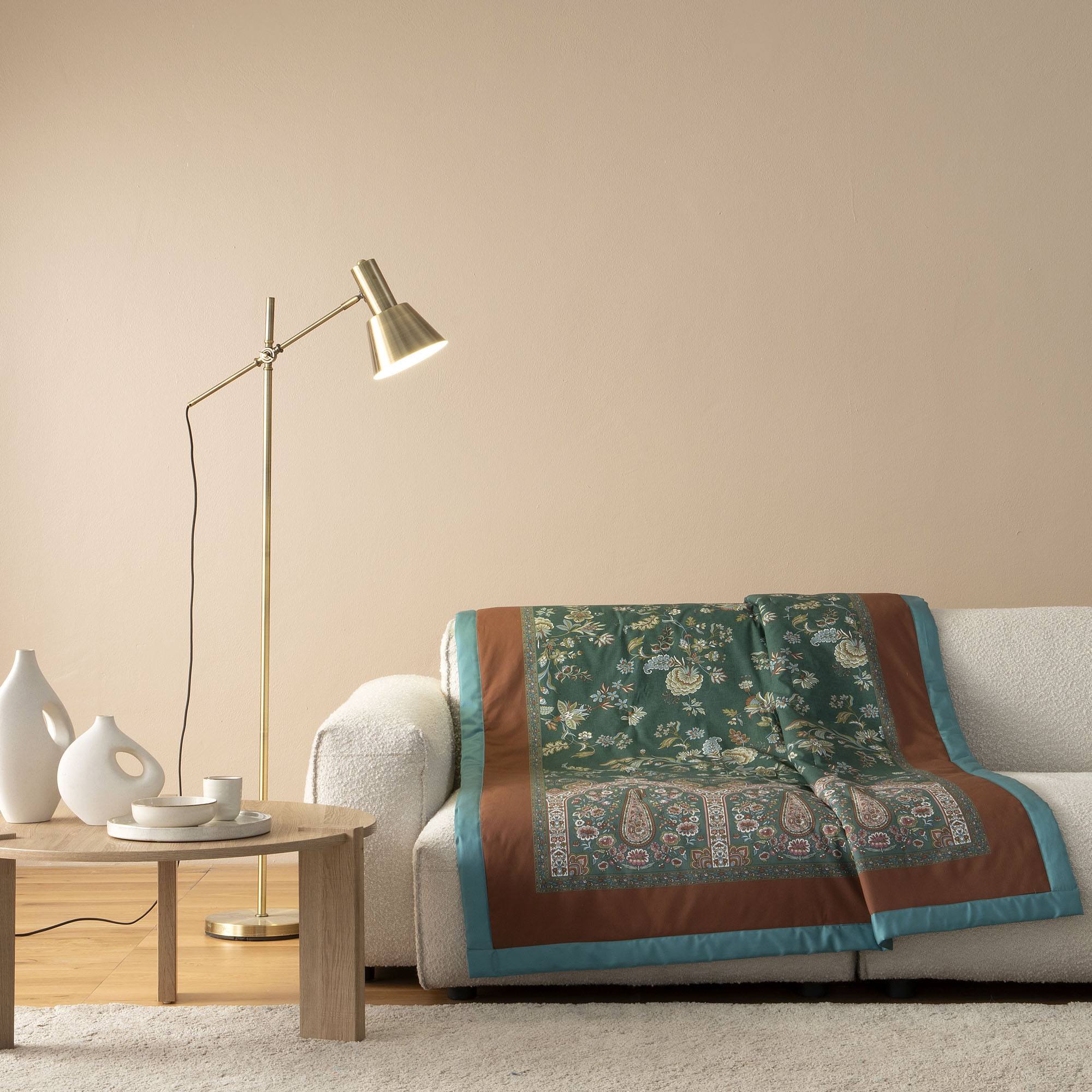 Natur, Ornamentik und mediterranes Flair vereinen sich im Bassetti Plaid Indian Roses V1. Das feine Ramage-Muster, inspiriert von orientalischen Textiltraditionen, rankt sich wie ein stilisierter Lebensbaum über den Stoff.