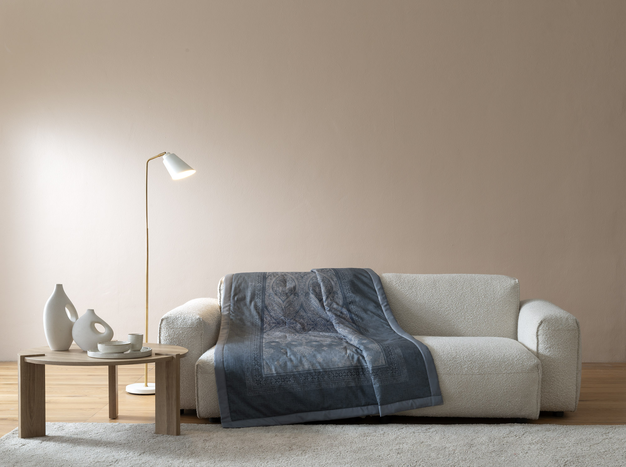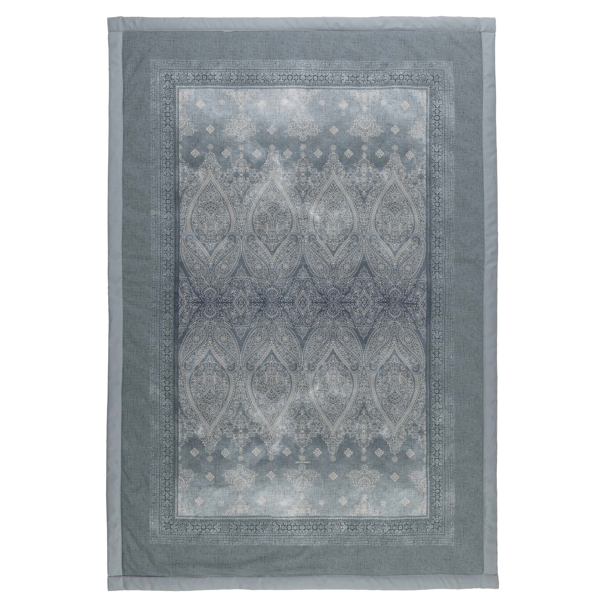 Das Bassetti Plaid Kerala G1 vereint luxuriösen Komfort mit elegantem Design. Inspiriert von der wundervollen Landschaft Siziliens zwischen Palermo und Agrigento, verschmelzen in seinem einzigartigen Design verschiedene Granfoulard-Elemente und Medaillons mit Paisley- und Blumenmotiven. Die Farbtöne Silber und Marineblau verleihen ihm ein unverwechselbares italienisches Flair und eine angenehme Atmosphäre für jeden Ihrer Räume.