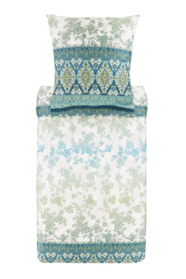 Reisen Sie mit dem neuen Design der Bassetti Bettwäsche V1 nach Agrigent, einer bezaubernden Stadt in Italien. Teil der Herbst/Winter Kollektion 2023, präsentiert Bassetti das aufregende neue Farbdesign der Agrigento Serie. Die harmonischen Grüntöne der Blumenmuster heben sich elegant vom hellen Hintergrund ab und schaffen eine Atmosphäre der Entspannung und Ruhe in Ihrem Schlafzimmer. Der hochwertige Druck garantiert lang anhaltende Farbbrillanz auf der Bassetti Bettwäsche V1. Gleichzeitig bietet der 100%ige Baumwollsatin ein angenehmes Hautgefühl und sorgt für ein herausragendes Schlaferlebnis. Die Bettwäsche V1 im Agrigento Design verkörpert die Werte von Bassetti – Tradition, Qualität und Innovation – auf einzigartige Weise. Erleben Sie den Zauber von Agrigent mit dieser exquisiten Bettwäsche.