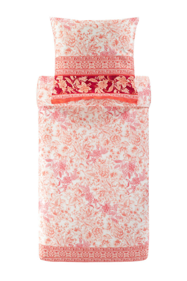Lassen Sie sich von der Capodimonte Bettwäsche R1. verzaubern. Ein Gefühl der Eleganz wird erzeugt. Sie werden durch das intensive rot orange an die sommerlichen Unterwasser korallen erinnert. Die Gravur Art erinnert an die Toile de Jouy Drucke, die ein markantes Gesamtbild verursachen. Es ist faszinierend, die kaum sichtbaren Rosen auf dem Gewebe zu entdecken, da sie aus 100% Baumwolle hergestellt sind.