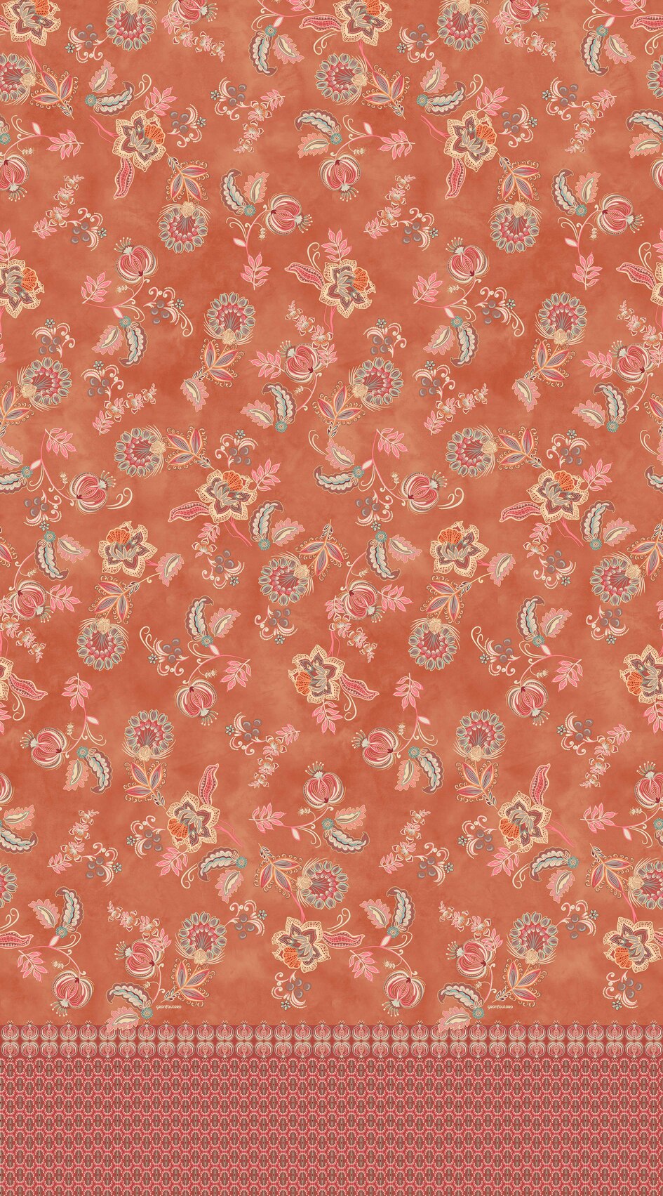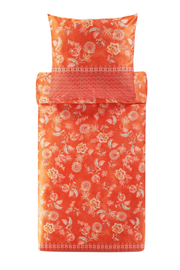 Ein wahrer Hingucker ist die einzigartige Farbkombination aus Muster und Bordüre. Die kleinteiligen Verzierungen ergeben ein besonderes Design, das für einen besonders eleganten Look sorgt. Ein leuchtendes orange ziert das Rankenmuster, welches einen Hauch von terrakotta aufweist. In unterschiedlichen Farbtönen wie mint grün und weiß harmoniert das Muster perfekt. Das Design der Bordüre besteht aus einem terrakotta Farbton welches den Kontrast zum Muster unterstreicht. Die kleinen Details und Verzierungen werden von den kleinen Details und Farbnuancen der Bettwäsche gekonnt hervorgehoben und verleihen der Bettwäsche einen besonderen Charme.