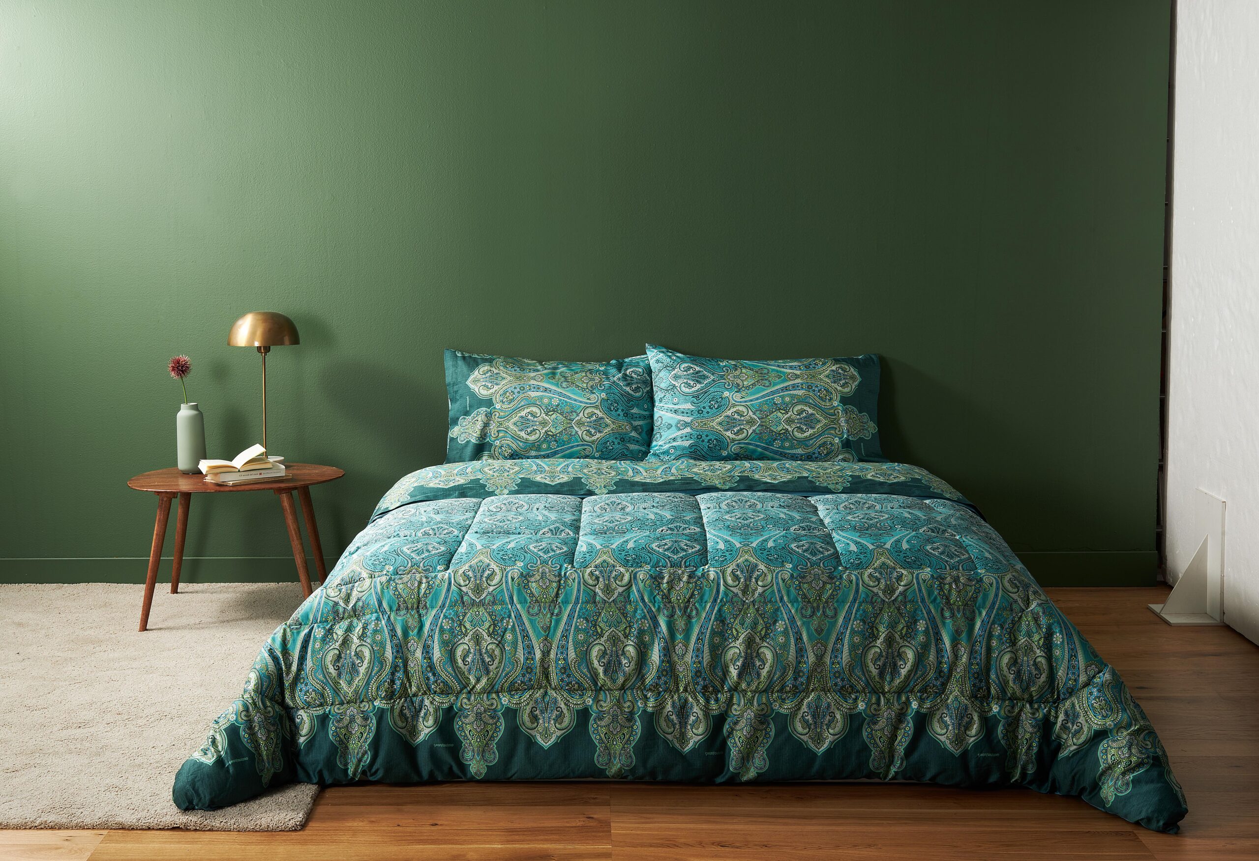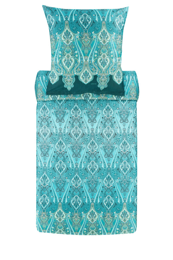 Die Bassetti Bettwäsche Ragusa V1 gehört zu den neuen Farbvarianten der Ragusa Serie in der Herbst/Winter Kollektion von 2023. Dieses einzigartige Design kombiniert ausdrucksstarke Grüntöne mit dem charakteristischen Paisleymuster von Ragusa V1 und verleiht Ihrem Schlafzimmer eine bemerkenswerte Note. Die passenden Satin-Kissen mit vier Volants runden das italienische Flair dieser Bettwäsche perfekt ab. Hergestellt aus zartem und leichtem 100% Baumwollsatin bietet sie Ihnen ein herausragendes Schlaferlebnis. Der hochwertige Druck sorgt dafür, dass die Farben lange Zeit lebendig bleiben und steht für die erstklassige italienische Qualität von Bassetti.