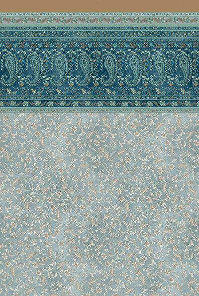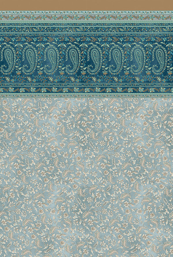 Das neue Bassetti Modell Como G1 kennzeichnet sich durch einen mintfarbenen Fond, der mit kleinen Paisley Motiven, sowie floralen Mustern verziert ist. Besonders hervorstechend, ist die breite Bordüre in einem dunkleren Blau, welches mit größeren Paisley Motiven versehen wurde und rote Blumenakzente aufweist. Abschließend greift der goldene Abschluss der Bordüre den Blickfang auf sich und rundet das Einrichtungsfoulard Como G1 besonders ab.