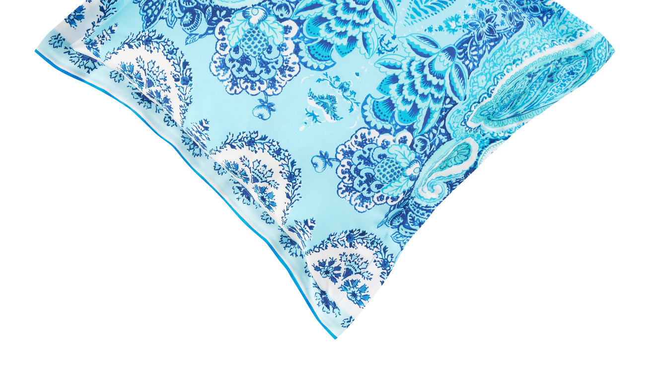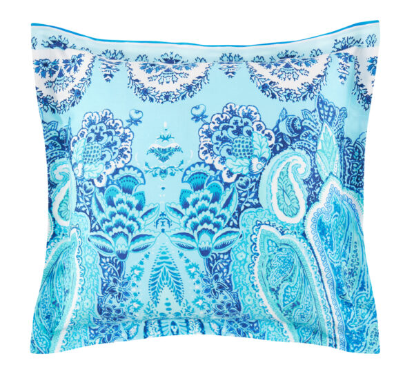 Das Bassetti Kissenhüllen Set Mergellina B1 ist eine wahre Augenweide mit seinem opulenten Muster, das Blüten, Ranken und Blätter in einer harmonischen Komposition vereint. Die intensiven Farben, insbesondere das lebendige blau, entführen in die Atmosphäre eines Meeres abends in Italien. Ein weiteres raffiniertes Element ist das zarte blau im unteren Teil der Bassetti Kissenhülle Mergellina B1 das durch das weiße Muster einen subtilen Effekt erzielt.