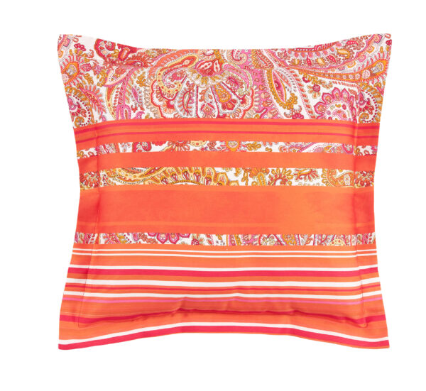 Die Kissenhülle Noto R1 von Bassetti aus der neuen Frühjahr-Sommerkollektion 2023 ist die ideale Wahl für alle, die kräftige und warme Farben lieben. Die Paisley-Elemente des Musters verleihen jedem Raum ein besonderes Ambiente, um das Ihre Gäste Sie beneiden werden. Die Farbkombination aus Orange, Rot und Pink bringen Ihnen den Sommer nach Hause und ist mit anderen farblich abgestimmten Accessoires ein wunderbarer Hingucker.