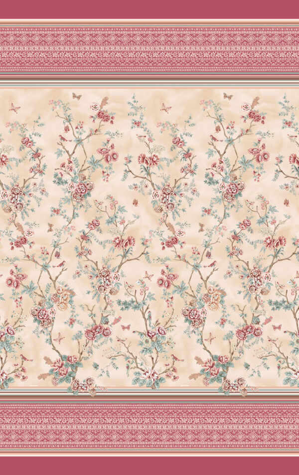 Wie aus einem Märchen projiziert erblicken wir das Dessin des eleganten Granfoulards Pallanza P1, welches farblich von einem zarten Rosa eingenommen wird.