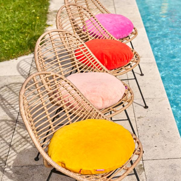 Die runden qualitativ hochwertigen Nickykissen von farbenfreunde lassen Ihr Zuhause fröhlich erstrahlen. Ob einfarbig oder kombiniert zu einer Regenbogenlandschaft: Die runden Kissenhüllen von farbenfreunde werten Ihre Wohnräume farblich auf.