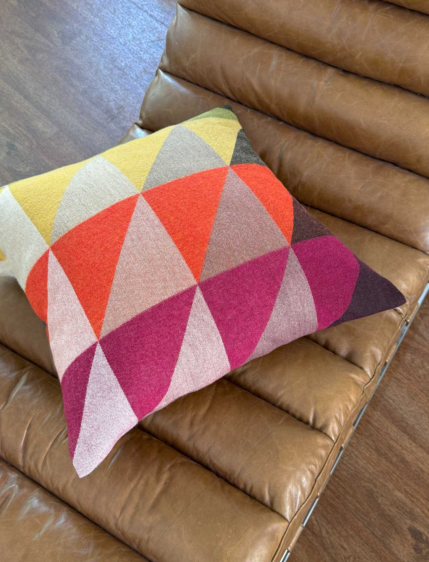 Rhythmus und Lebensfreude sind die Inspirationen dieses Designs. Auf dem Kissen tanzen kontrastreich viele bunte Dreiecke herum und setzen damit tolle Akzente im Wohnbereich. Extra weich lädt die feinste Merino-Schurwollel zum Kuscheln ein. Die passende Decke darf da natürlich nicht fehlen. Art. Calypso KissenL, 50 x 50 cm, 40 x 60 cm, mit Reißverschluss, ohne Füllung, 100% Merino-Schurwolle, oekotex 100 zertifiziert, Made in Germany