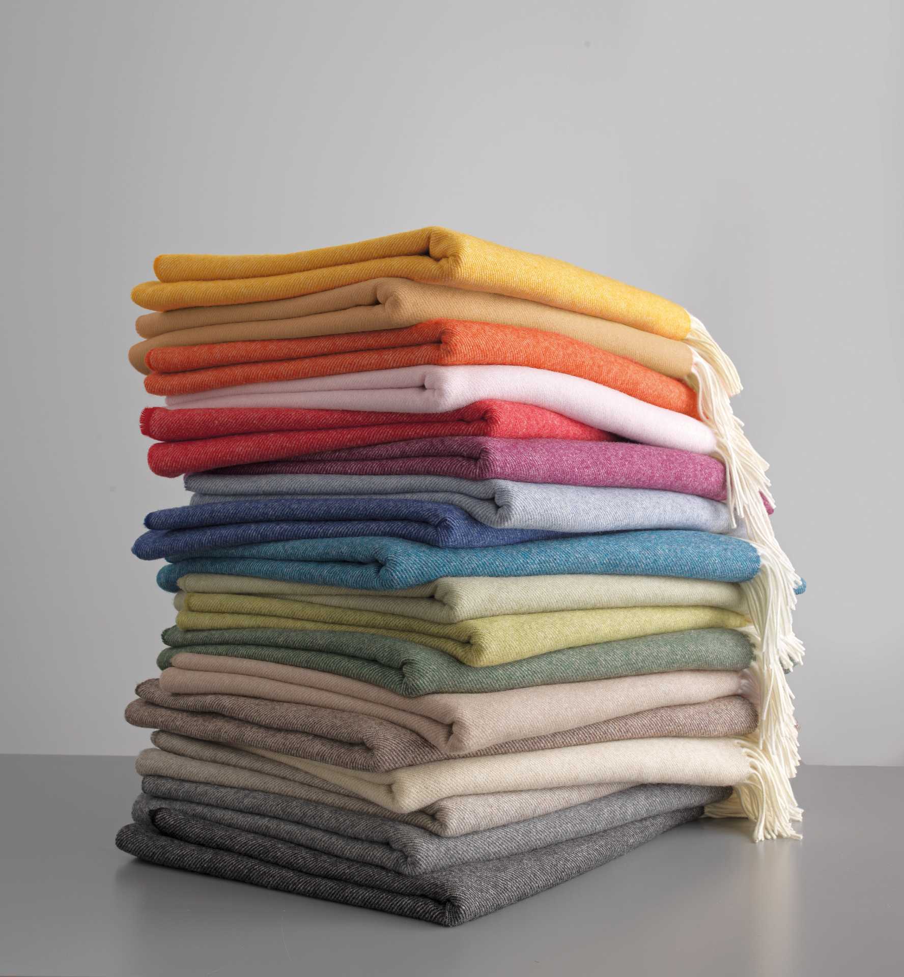 Dieses extra-kuschelweiche Plaid aus feinster Geelong-Lammwolle ist ein Klassiker. Mit seinen hellen Fransen als Akzent wirkt es nie langweilig. Und dem herrlich weichem Griff kann fast niemand widerstehen… Die große Farbauswahl aus intensiven Uni-Melange-Töne machen die Wahl schwierig. Vielleicht müssen es doch 2 Plaids sein? Art. Boston, 130 x 200 cm, 100% Schurwolle, Made in Germany, oekotex 100 zertifiziert