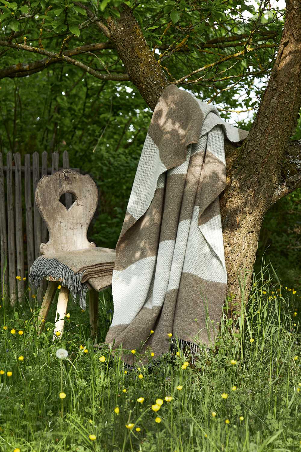 Mit seinen großen Blockstreifen bringt Johann einen modernen Look in Ihr Wohnzimmer. Das Merino-Schurwollplaid stammt aus unserer Native-Linie mit fränkischer Merino-Schurwolle. Durch die spezielle Bindung entsteht eine rustikale Optik, aber das Material fühlt sich angenehm weich an. Die neutralen Farben sind zeitlos und wunderbar zur kombinieren. Art. Johann, 100% Merino-Schurwolle, Made in Germany