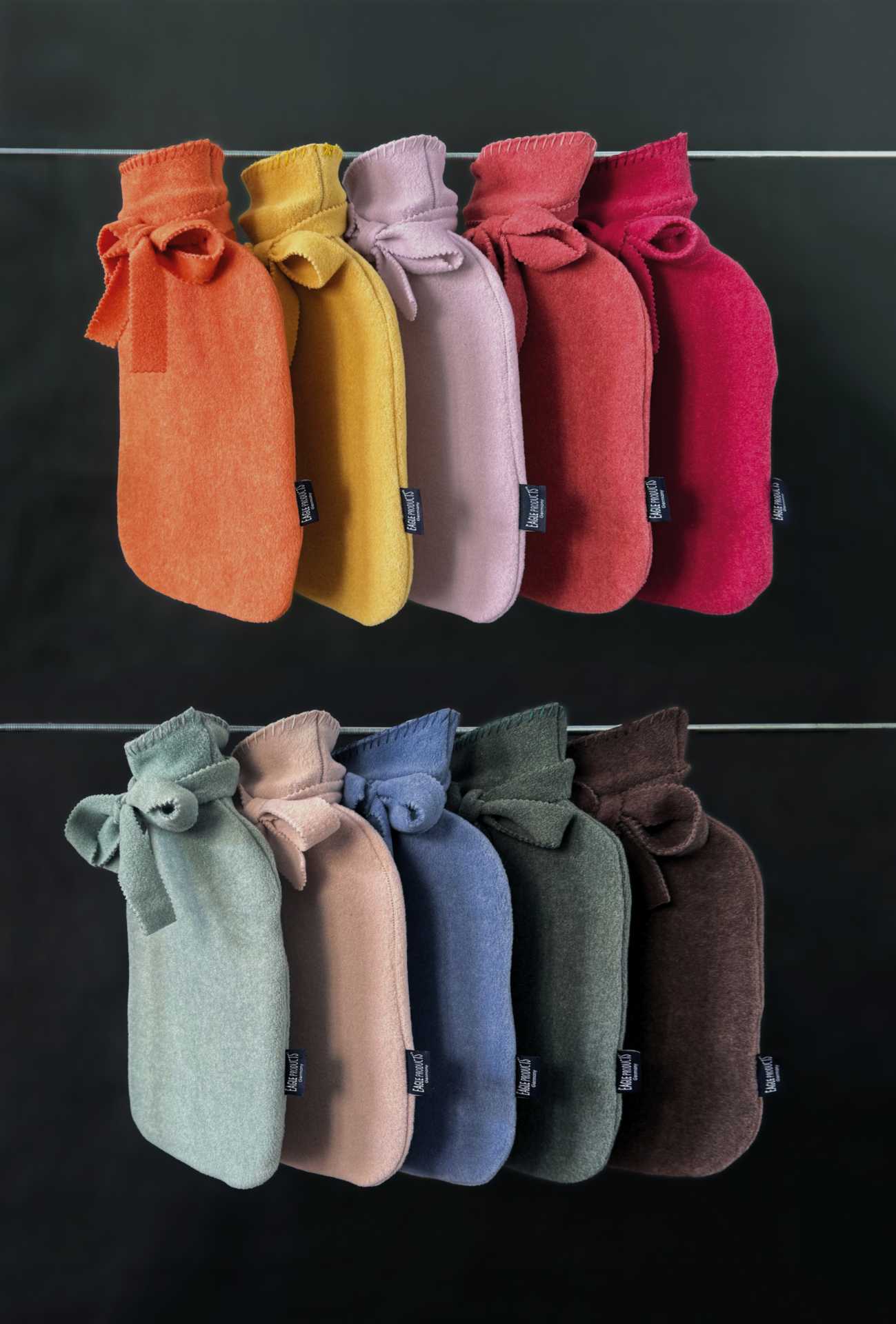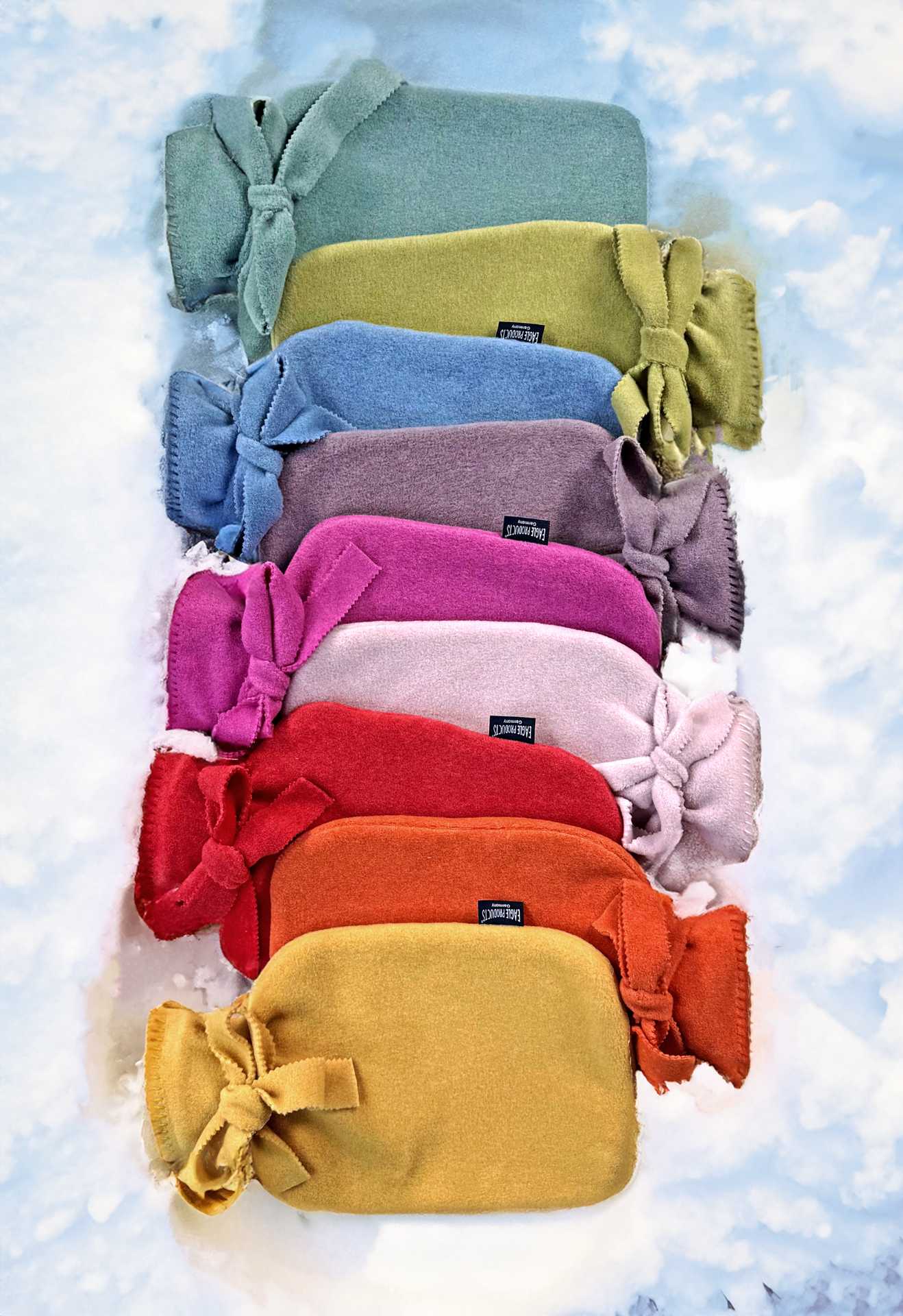 Kuschlig weich und wärmend ist die Wärmflasche mit Fleecebezug Tony-WF. Das weiche Fleecematerial mit 35% Baumwollanteil schmiegt sich wunderbar an und ist in vielen Farben lieferbar. Mit der kleinen Schleife am Flaschenhals kann sie auch ein wunderbares Geschenk sein. Art. Tony-WF, 65% Polyester/35% Baumwolle, oekotex 100 zertifiziert